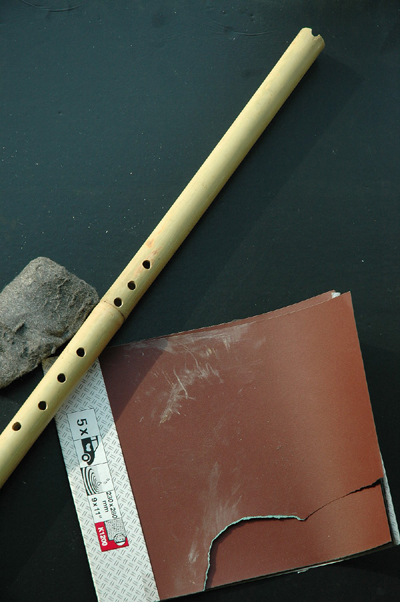 经 用 测 音 器 检 定 后 ,发 觉 这 箫 约 低 了 10 多 音 分 ,这 也 算 是 不 俗 的 初 步 结 果 !现 在 先 撇 开 细 调 的 工 序 不 谈 ,进 而 和 大 家 分 享 把 箫 美 观 化 的 各 个 工 序 。打 磨 外 皮 会 令 箫 有 脱 胎 换 骨 的 变 化 ,我 是 先 用 水 磨 幼 纱 纸 打 磨 表 面 ,然 后 用 抛 光 棉 令 箫 弄 得 有 光 泽。