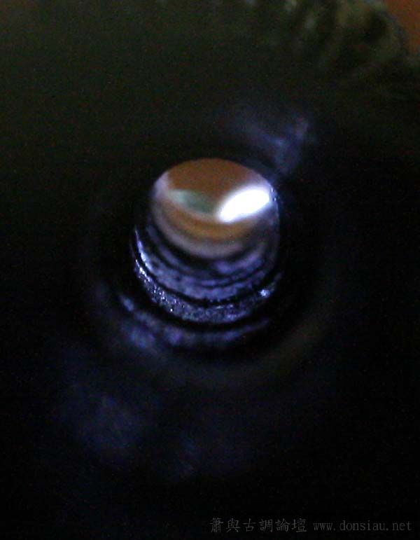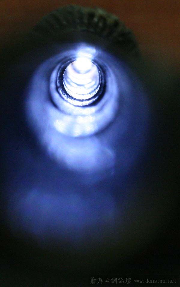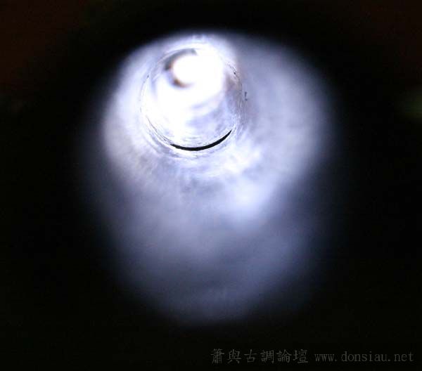 管尾以燈照射,由吹口端拍攝