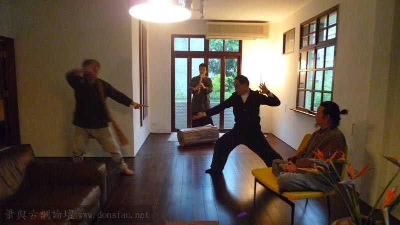 畫家于彭與主人洪先生也即興拳舞與簫相和