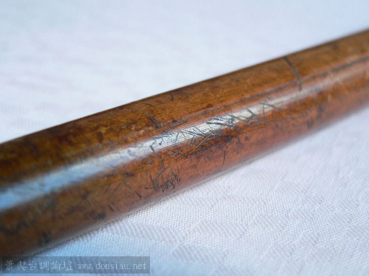 国庆节老屋搬家,发现一根细细的竹杆,大概是晾衣服用的之类, 估计有20多年历史,表面的伤痕看起来与玉屏的雕琢有异曲同工之妙,且已形成非常完美的包浆,色泽老成,锯下能用的一段带回来,上端口内径1.2CM,尾端口内径1.1CM,全长66CM,现将照片发上来,与大家分享。