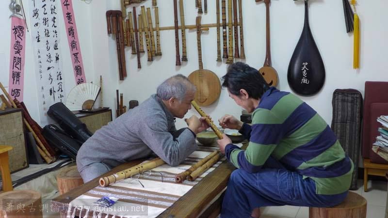 陳中申老師的學生也是研究所研究製笛的學生來工作室上課,先行講解製笛的原理與驗證方法