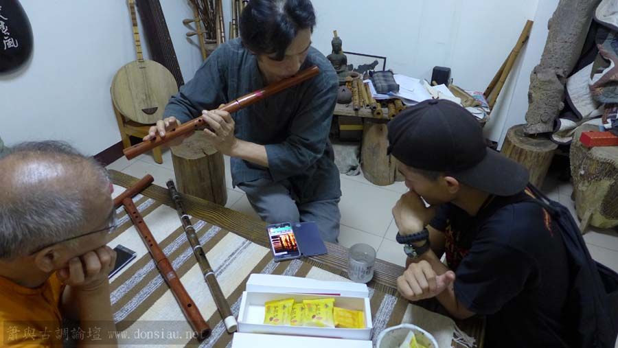 廈門南音樂團來台巡迴演出,三位洞簫後起之秀來訪學習,反應敏捷,很快就可掌握文松簫共鳴音色,深入講解與示範簫獨奏音色表情與濃淡美學,雖然是主吹南音,年紀輕輕的他們都很有心拓展古典新領域,對強大動態的簫愛不釋手,出讓自用樣品或U口或唐口,離開時已深夜,他們興奮的說今晚不用睡覺了,感受到他們熱切學習的心,教導很有意義!看到幾顆明日之星閃亮著。