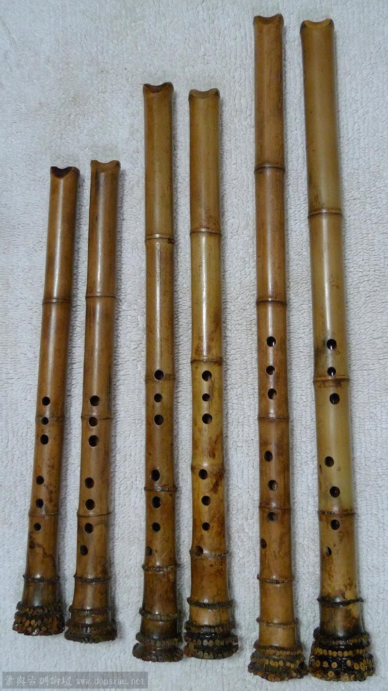 三組竹簫樣品,DG,BE,AD調性,右側都是粗濃型