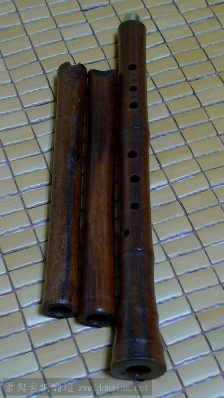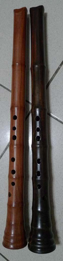兩管調整中木製唐口簫,圖左紅紫檀為南部李老師所訂(指定無上油臘)