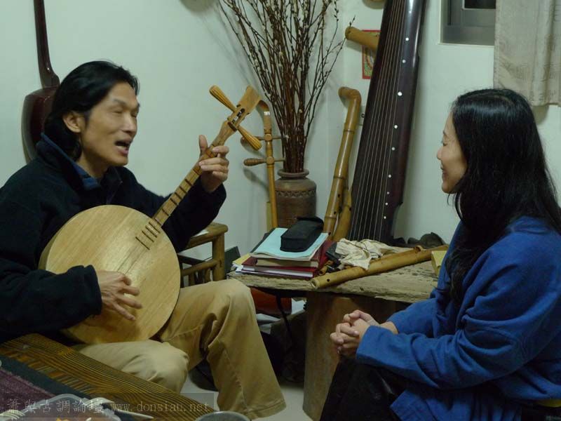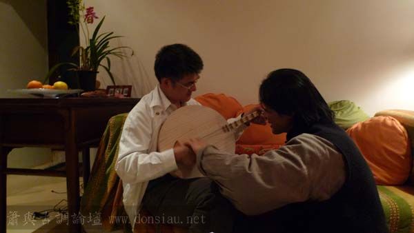 昨晚一位學生再來上個別課,加強月琴彈唱的技法,