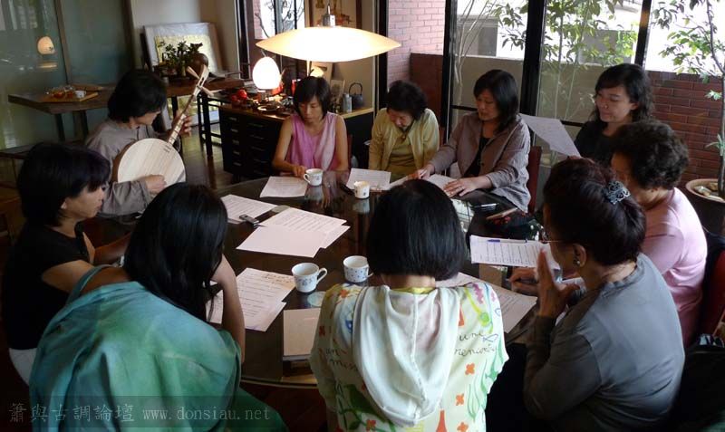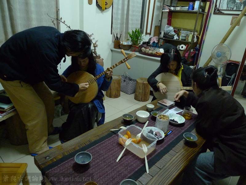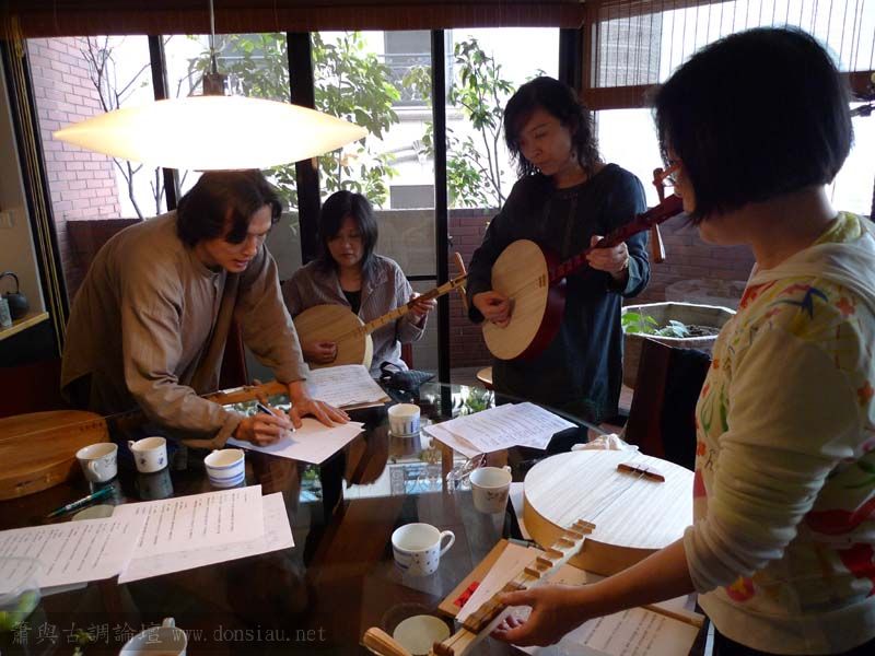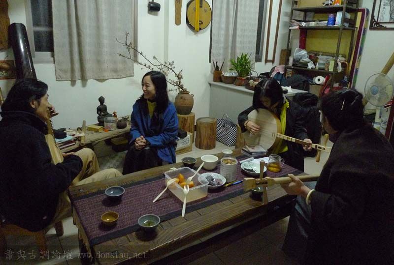 Tina,寶玲.欣霏等昨夜接著了空師父來訪,對於吟唱與月琴陸續都產生了興趣,