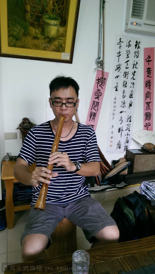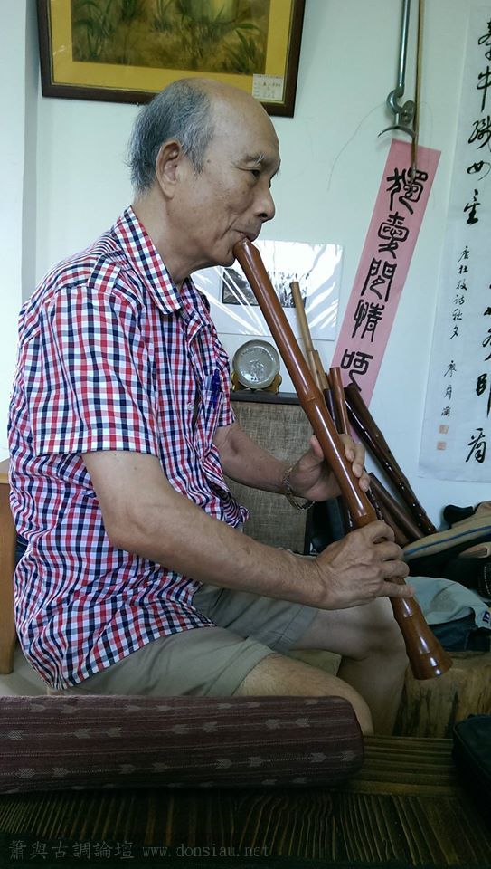 淡水施先生愛好傳統音樂與文化,開始學習南管簫