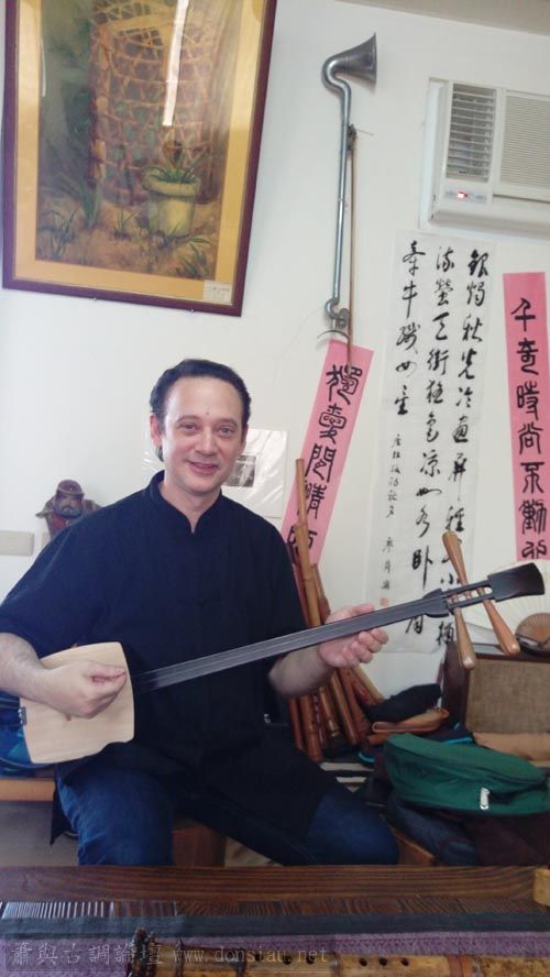 Gary來上今年最後一堂課,即將歸去美國半年,他去買了台灣桐面三絃,