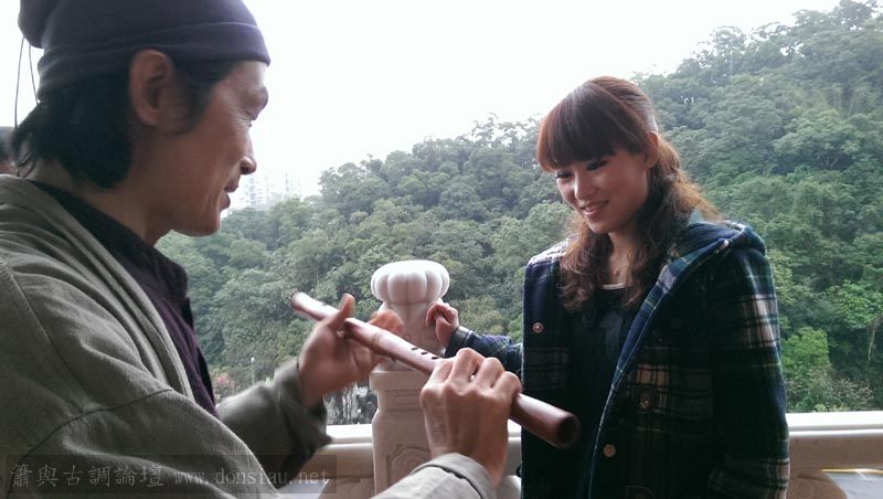 河南民族樂團所訂的九孔大G無膜笛今日交出,團員在松山慈惠堂演出,離台前前往會面,