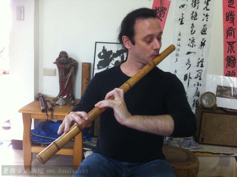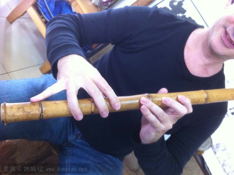 剛剛Gary再來上課,讓他試吹文松製作中桂竹無膜笛,