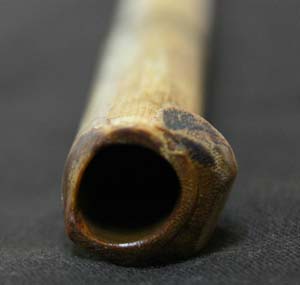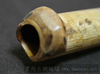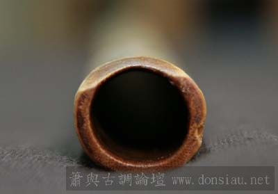 管璧太薄,吹端加厚以便舒適吹奏,再配上自然持簫,此管下把以手握式按孔,吹多久都不覺累;