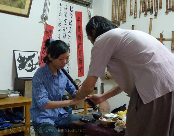 歌仔學會的學員秋桂來學簫,剛好中和墬醫師兄妹也隨後到達,
