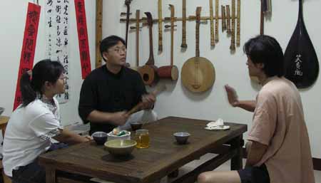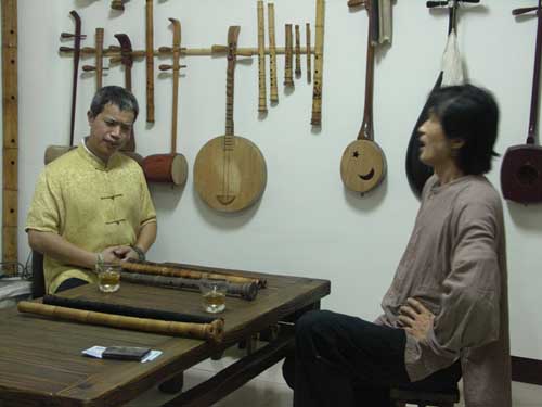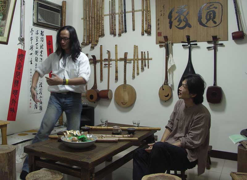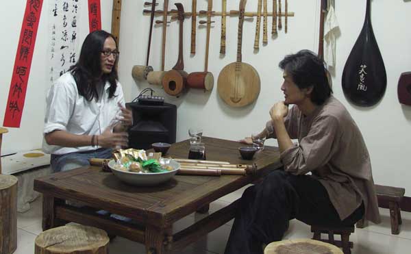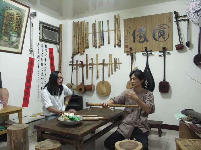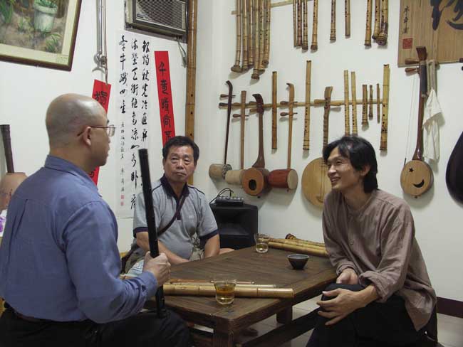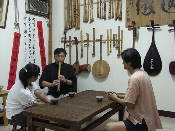 宋先生對濃淡簫聲很有興趣,文松乃分享吹禪的放鬆方式及專一的過程。