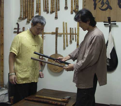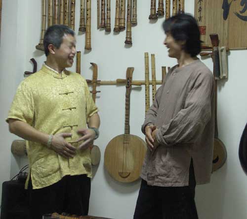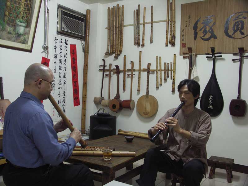 漢唐樂府的茂桐兄甫從瑞士法國巡迴演出一個月(16場)歸來,昨夜再訪,帶來一把二十多年前購買的木簫,是檀木所製,車工精美,可惜內徑是平行管徑,共鳴與音準都不是很理想。