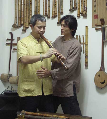 有很好協助效果,已經七年來,每逢假日他都奔跑陸續成立的道場,最近將簫導入.