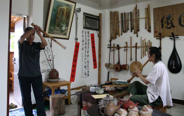 又聊起韓國公主仰慕書法家歐陽詢的故事.. 我吹簫時,不知他以竹當劍舞動英姿!
