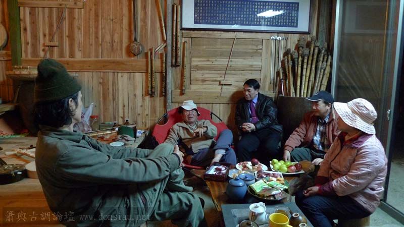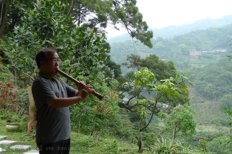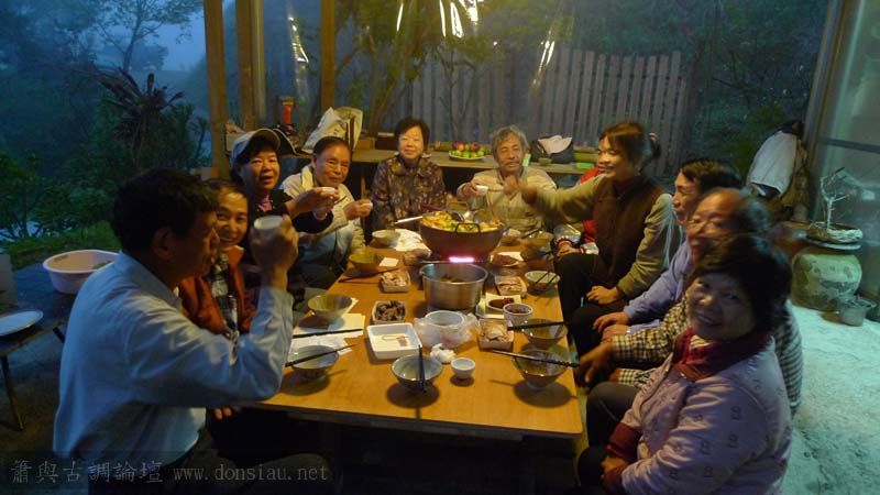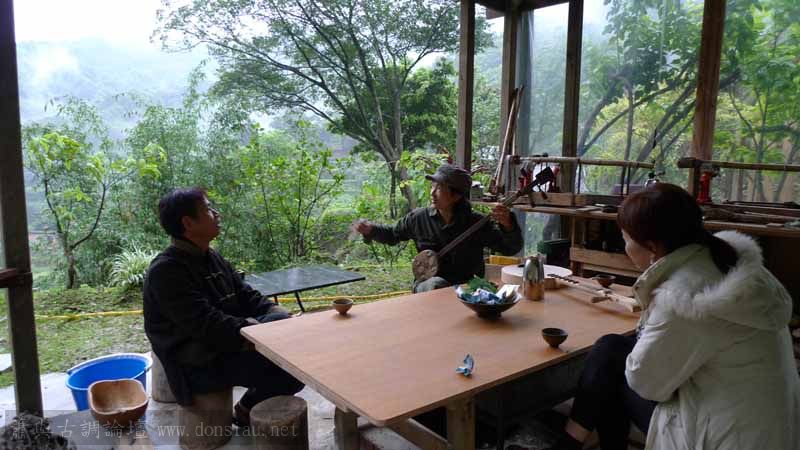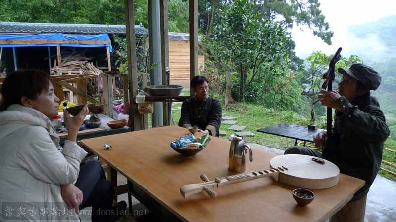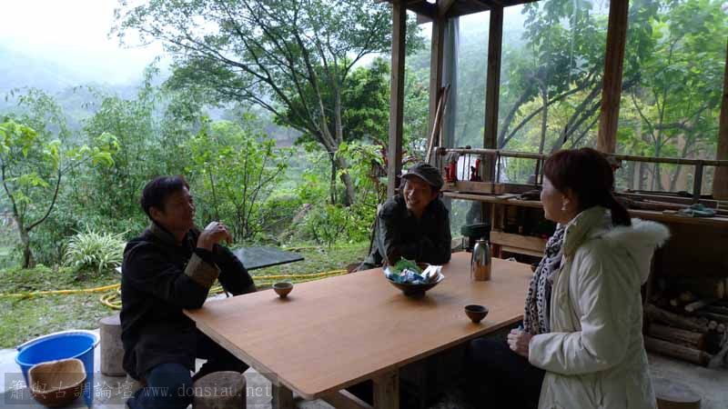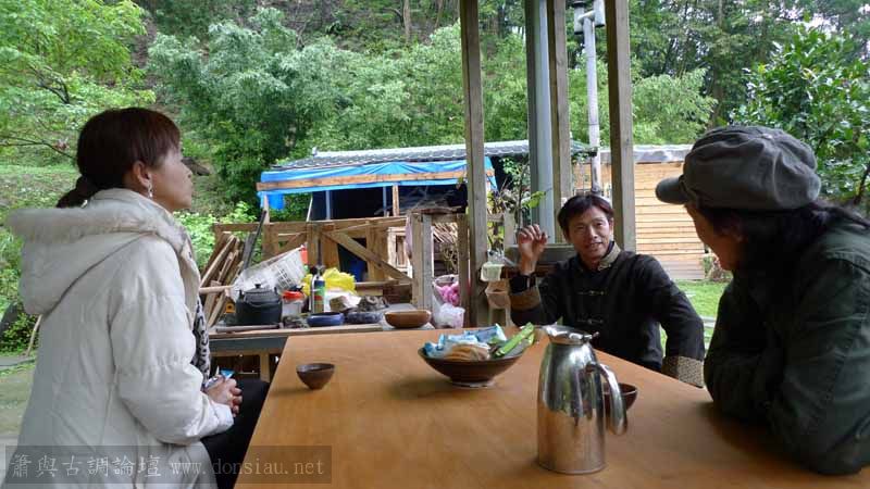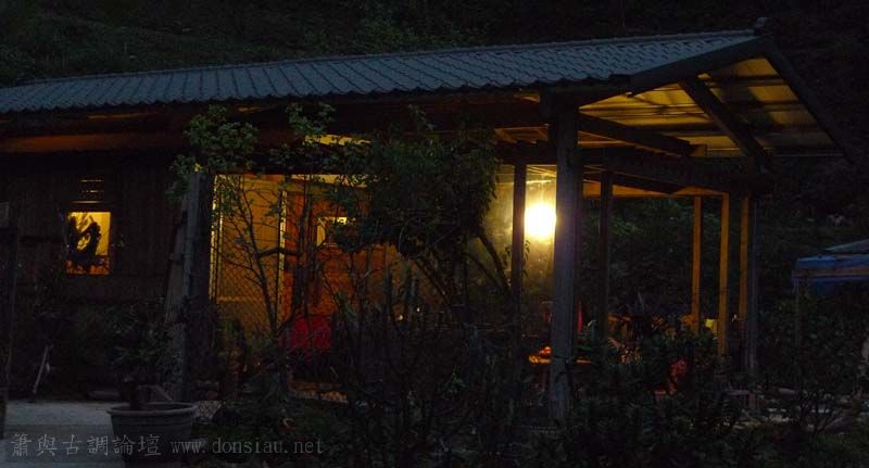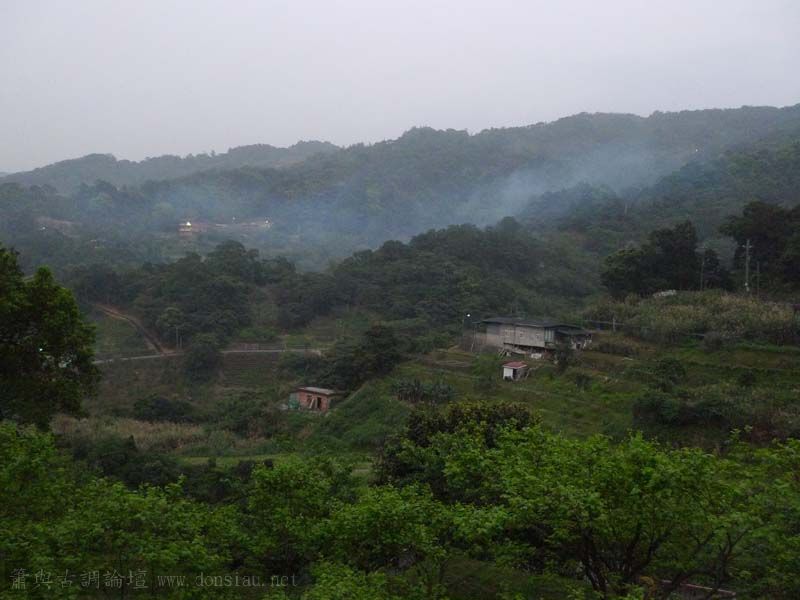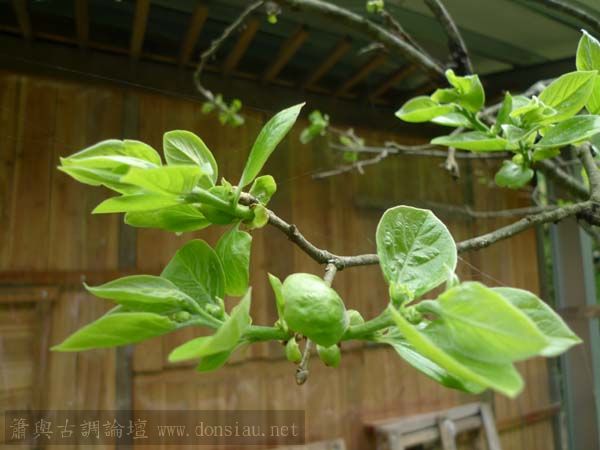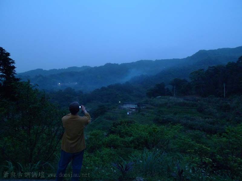 田園的柿子樹新芽成綠,黃昏靜觀入夜山嵐,是日剛好沈導演來訪,