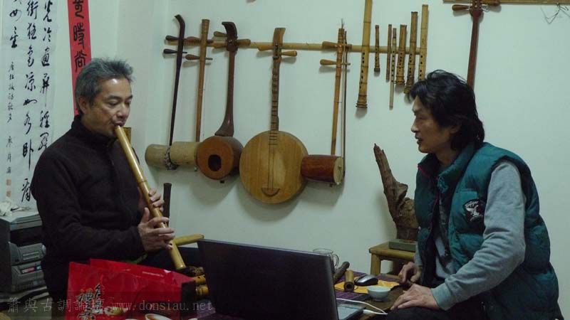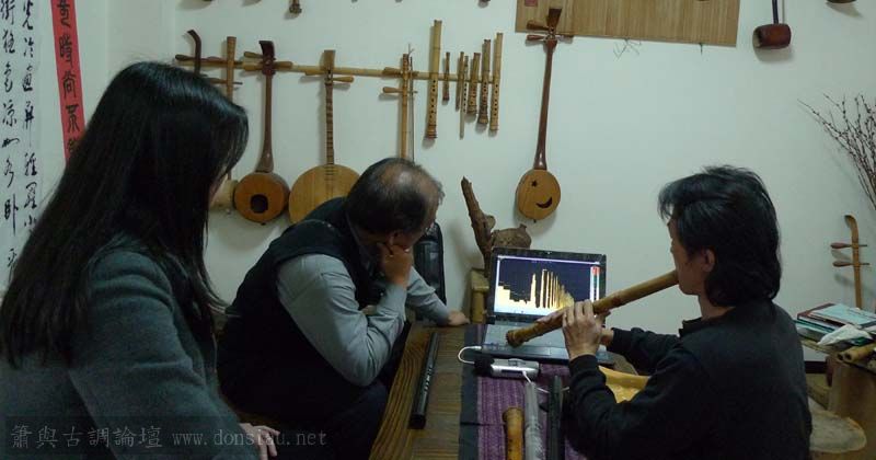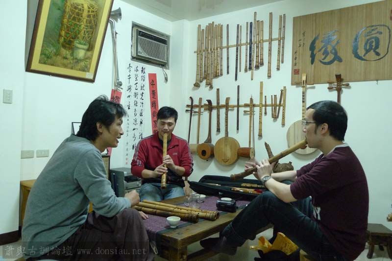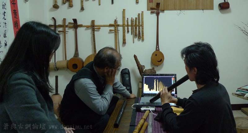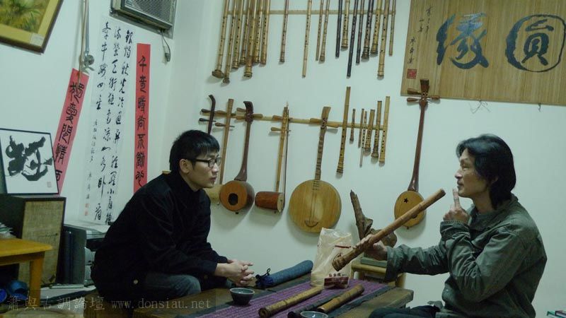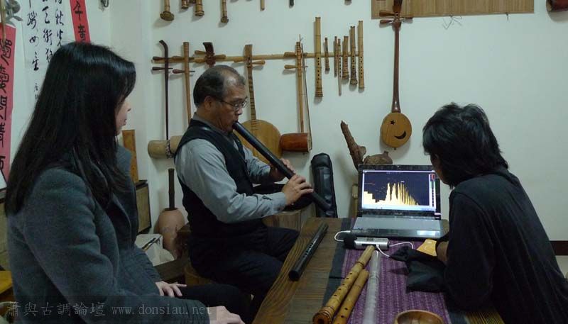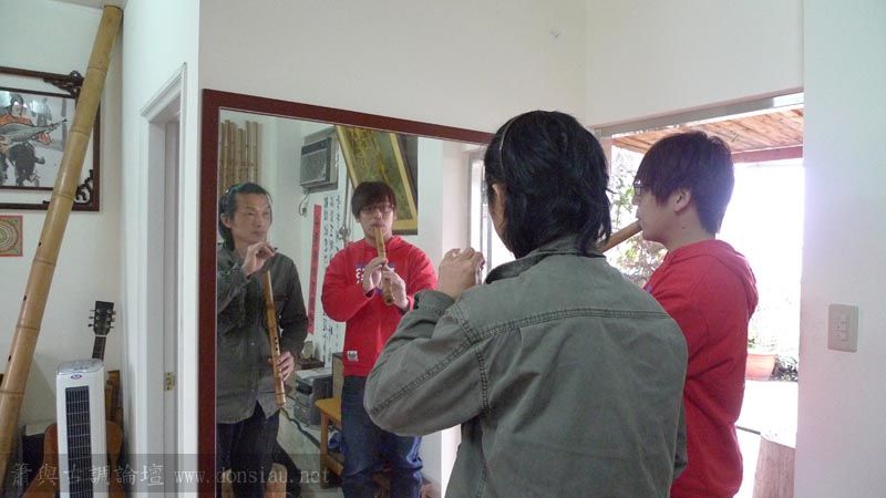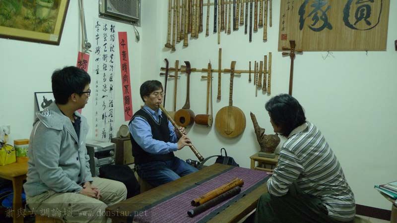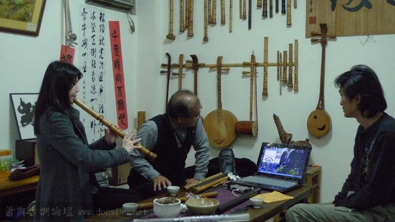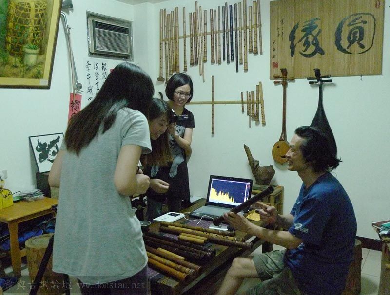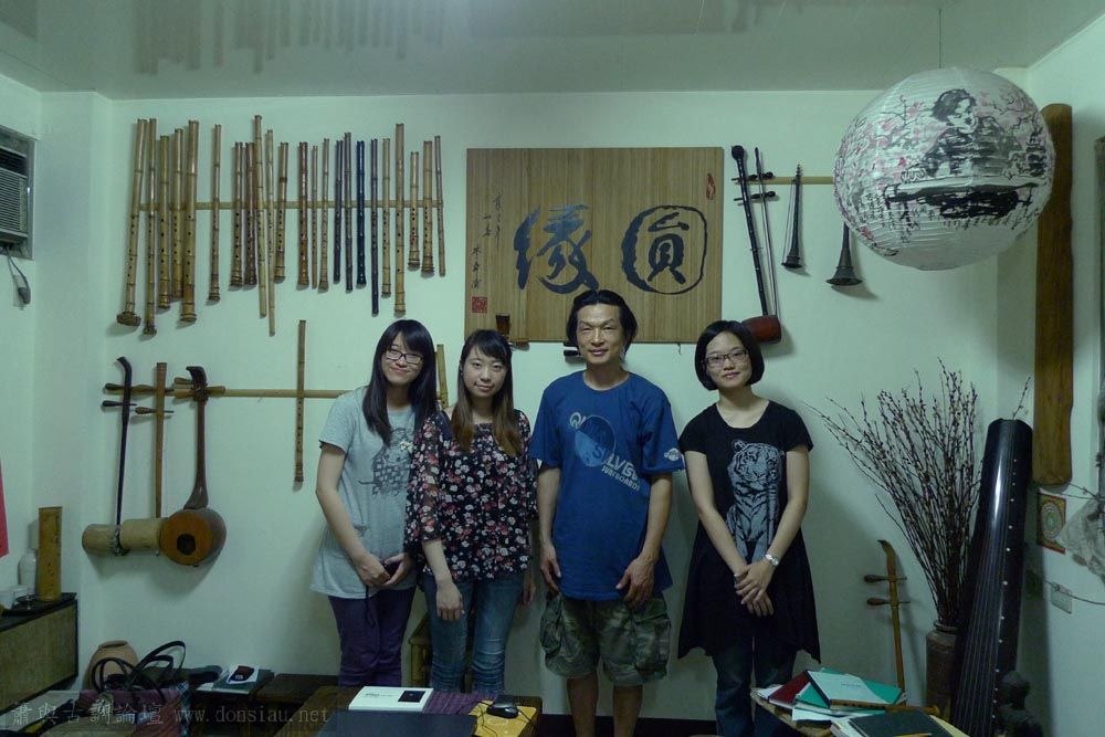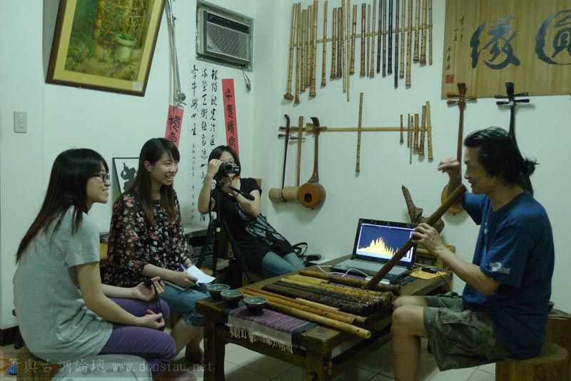 三位台師大傳統音樂研究所的同學來做文松簫田野調查