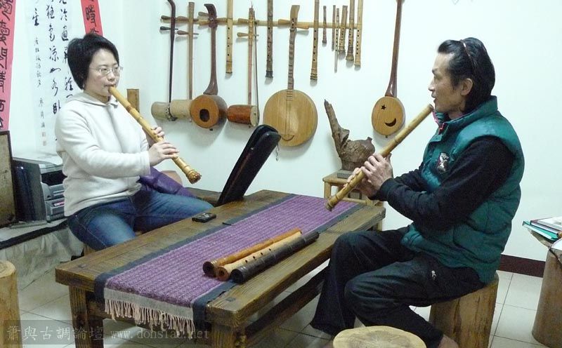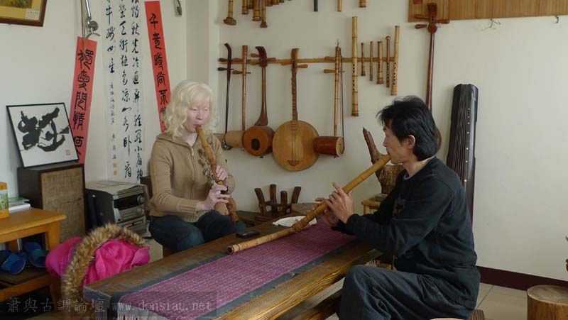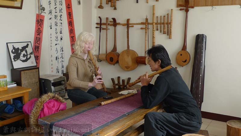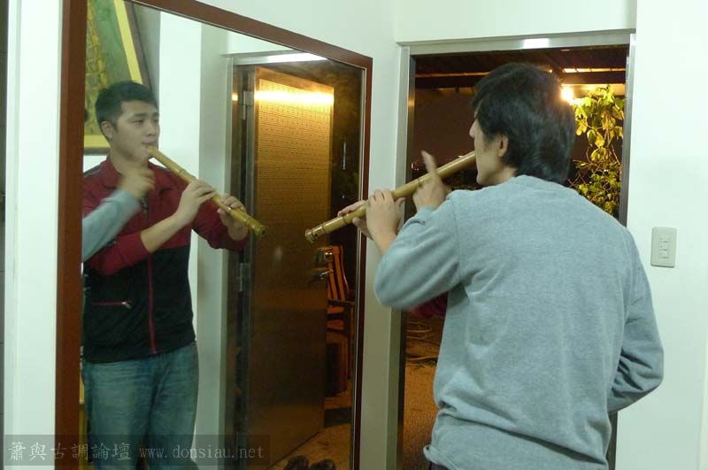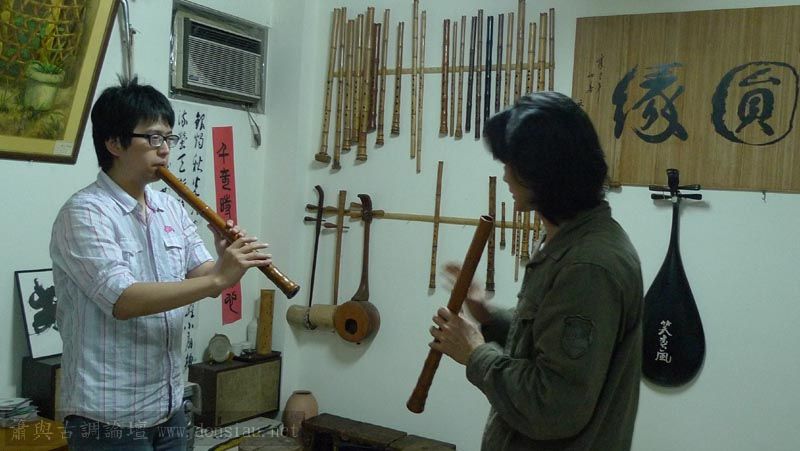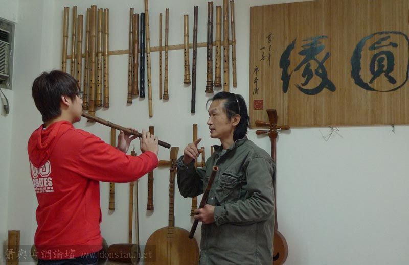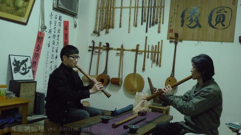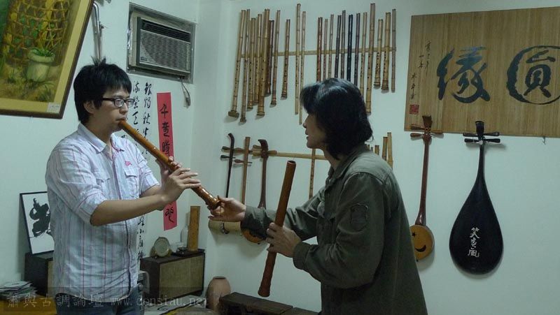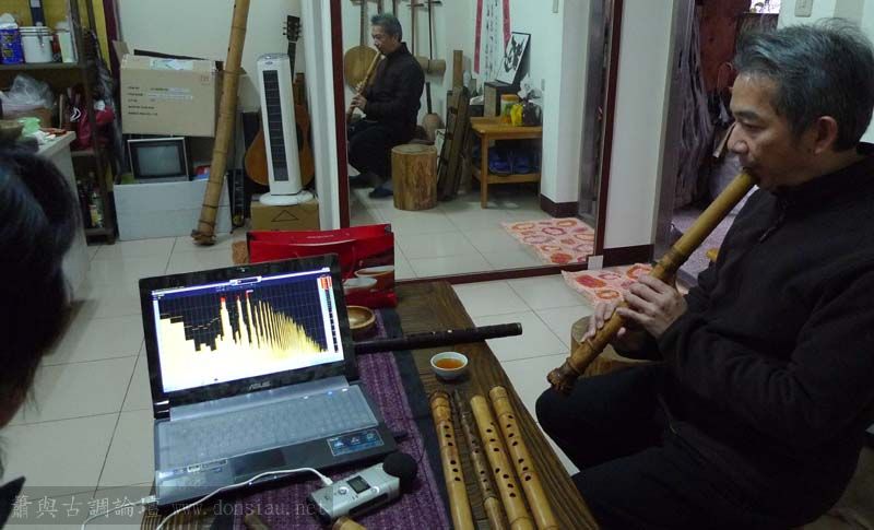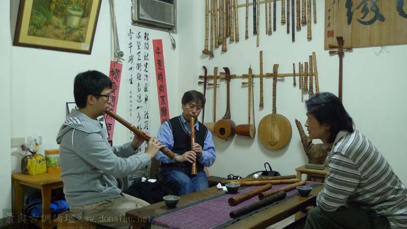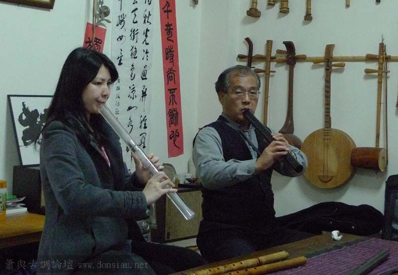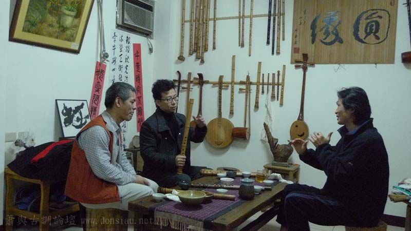 三位台師大傳統音樂研究所的同學來做文松簫田野調查