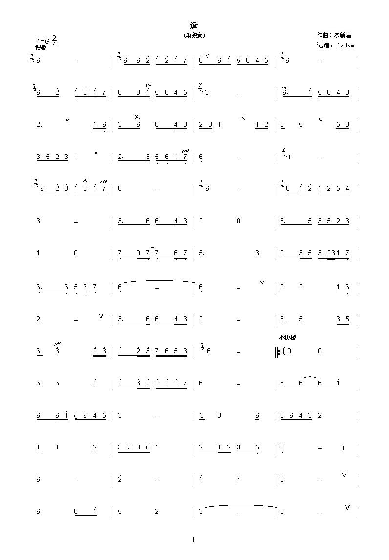 » 西門吹笛作曲演奏之簫獨奏曲<逢>