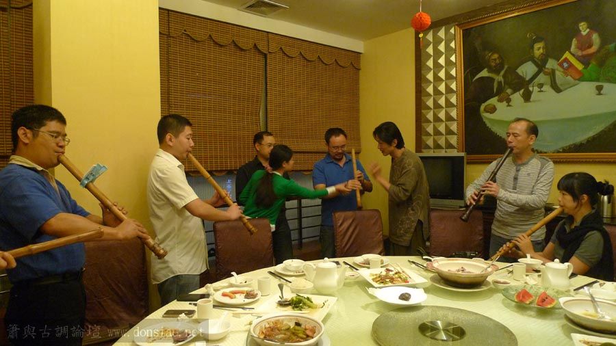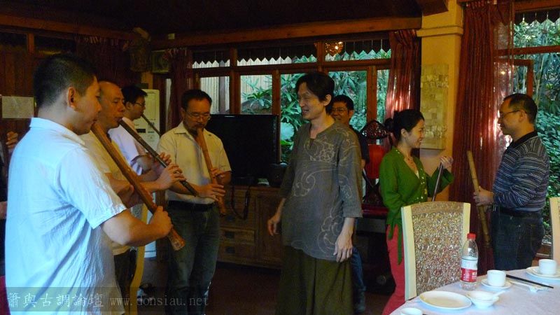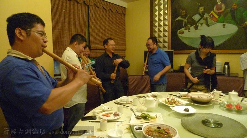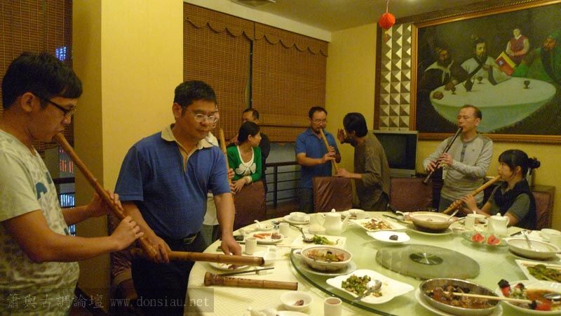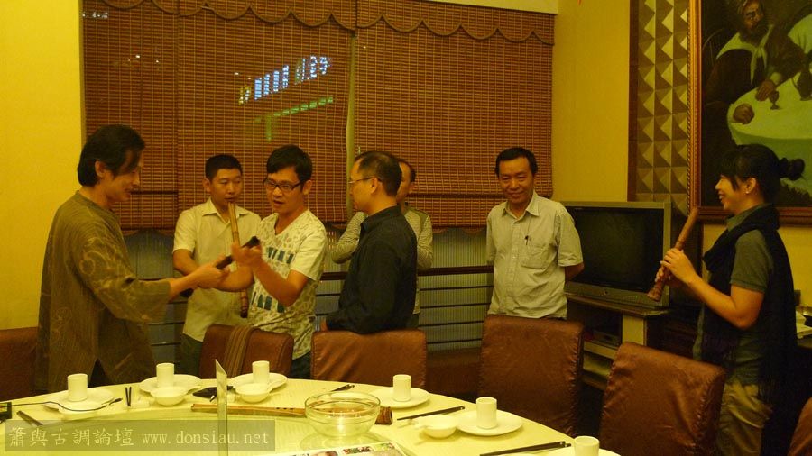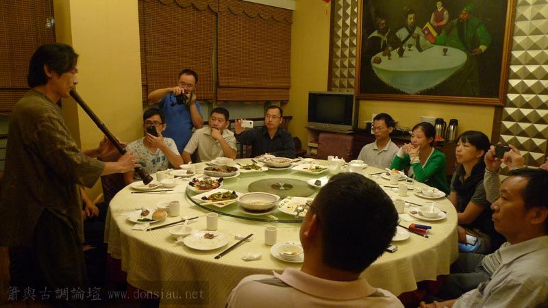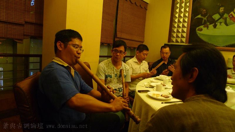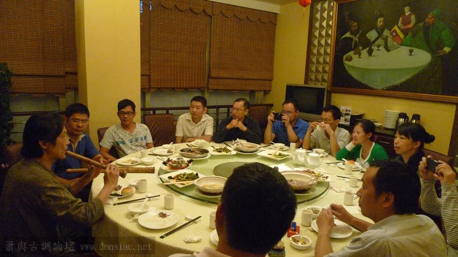 嶺南簫社熱情安排晚餐,並熱烈交流,文松也一一為簫友們調整口風音色,並作示範