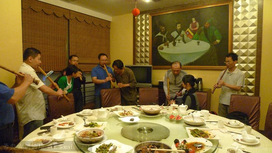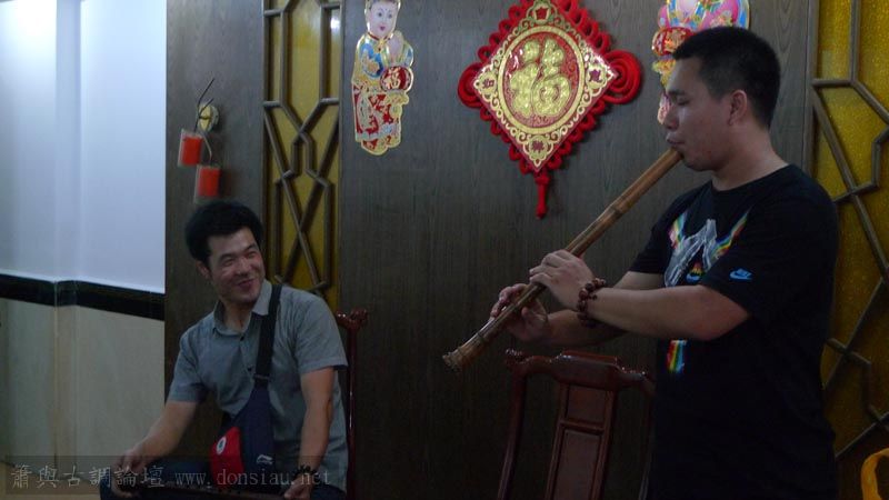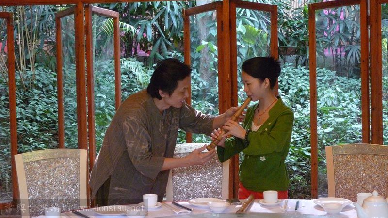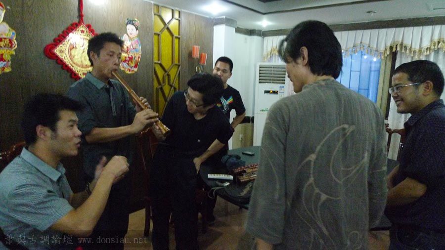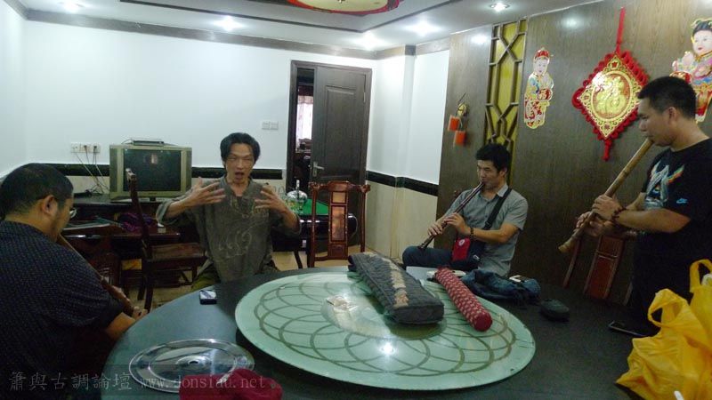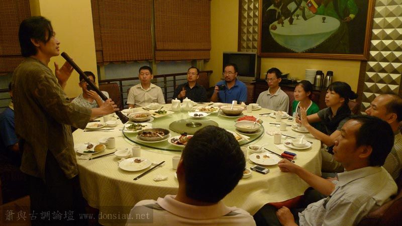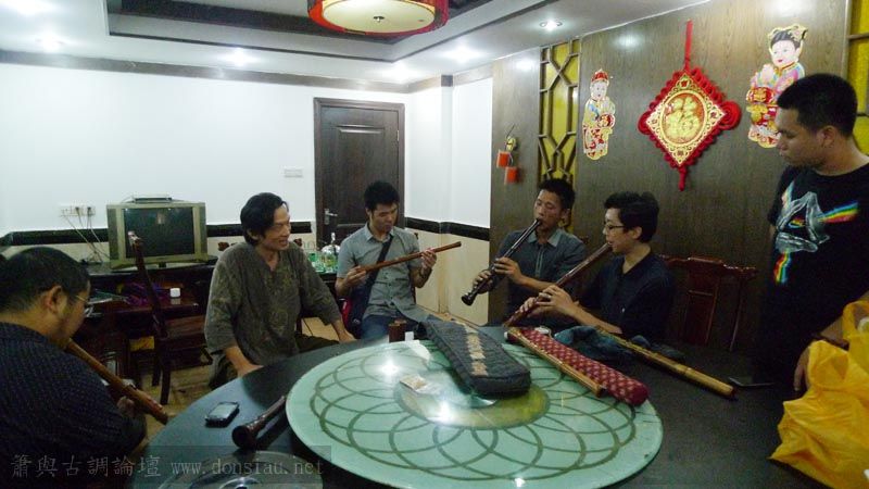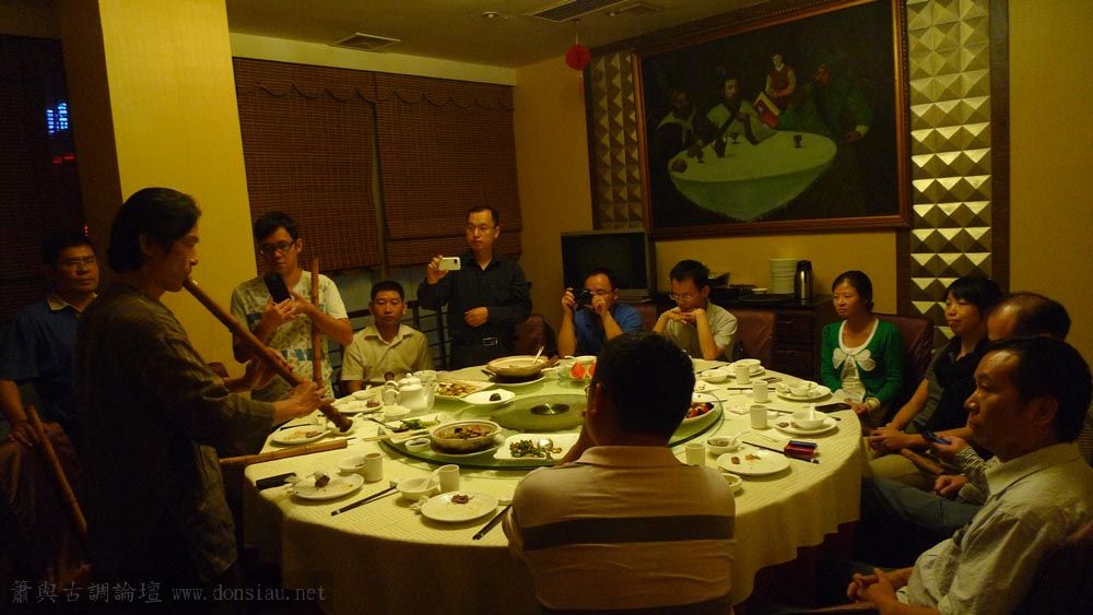 嶺南簫社熱情安排晚餐,並熱烈交流,文松也一一為簫友們調整口風音色,並作示範
