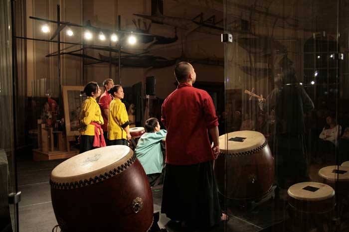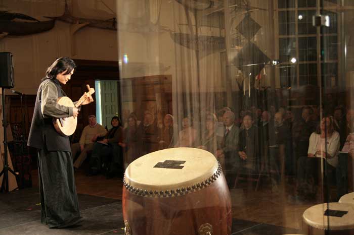 因此鼓師們將鼓面貼了膠布,以剪音量,古調音樂與吟唱在這空間下則有很好的效果。