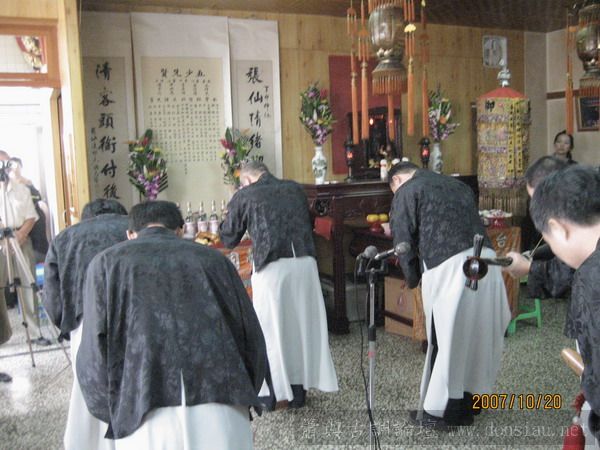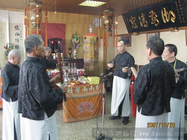 很隆重的典禮,不但擔任祭祀的人要站著演奏,在旁邊聽的人也要陪站,突顯南管人對郎君的尊重,真是非常棒的規矩!!
