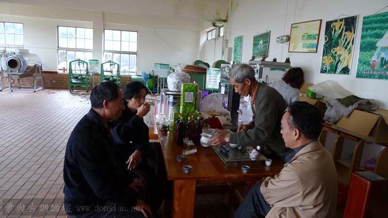會前在製茶所與茶農閒聊,受到熱情招待新茶..