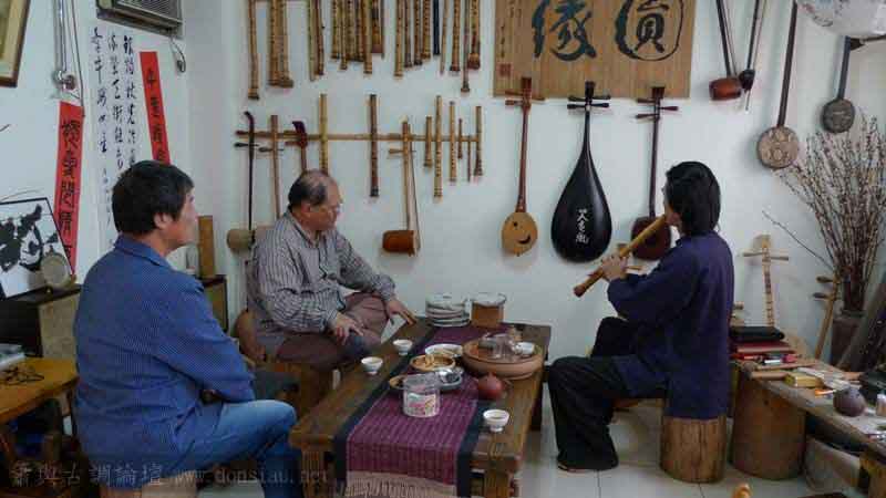 及製作流程深入探討,並將成果分享親朋好友,幾次因緣際會聽文松吹簫彈唱,