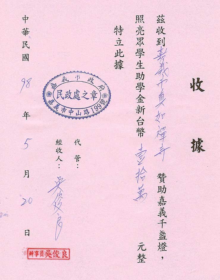此是文松老師捐贈[無曲之心]CD200片,因我了空不接受供養,民眾也不敢平白接受,乃將這些CD義賣所得捐贈回饋社會,讓更多想讀書的孩子得到助力. 更感謝廖老師的奉獻!