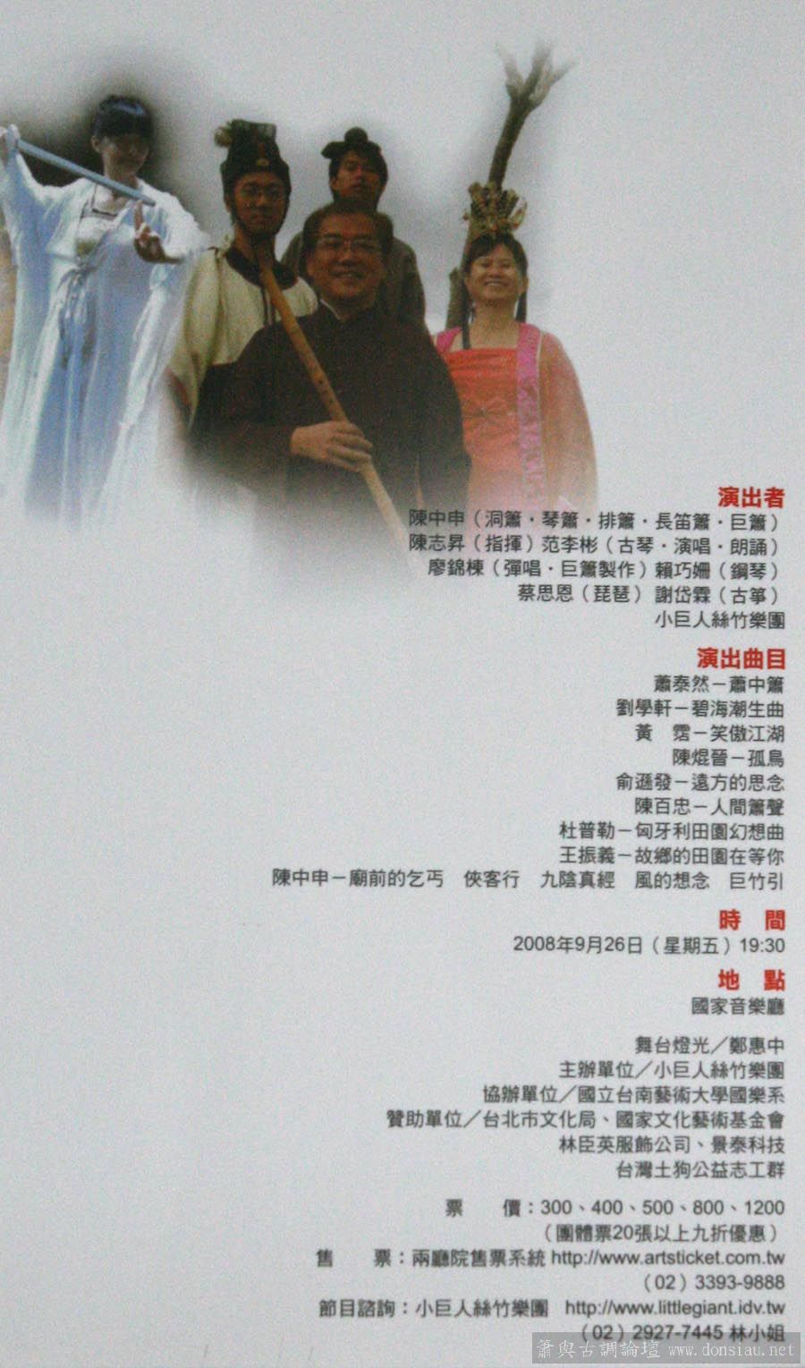 將來會發行dvd及紀念冊,這回可說是陳老師簫功力的展現,也算文松簫的應用發表.祝賀陳老師這回演奏會圓滿成功!