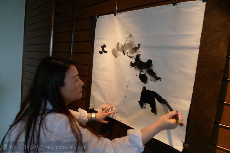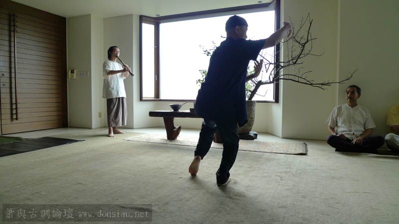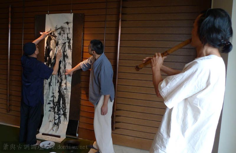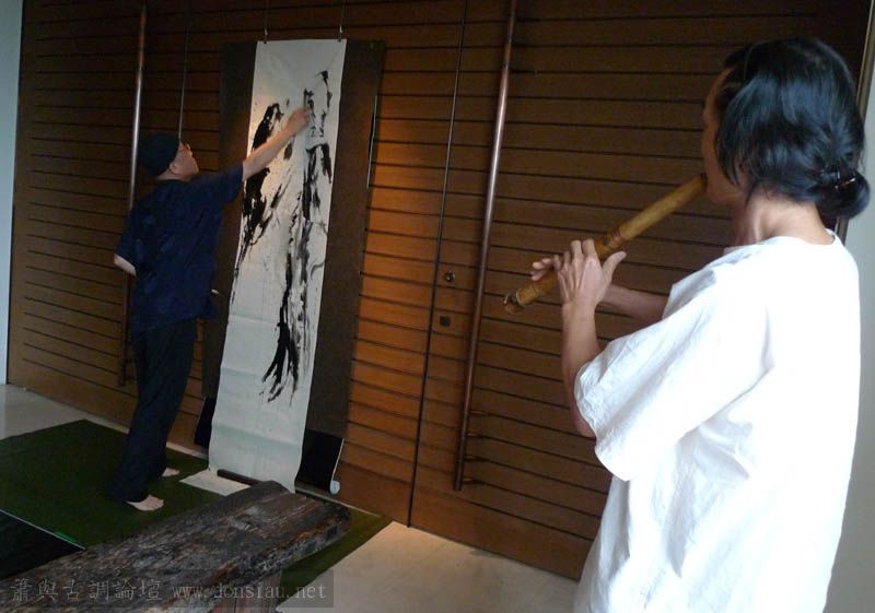 李老師以太極拳為引即興揮毫創作,文松以簫相和