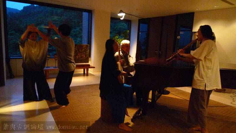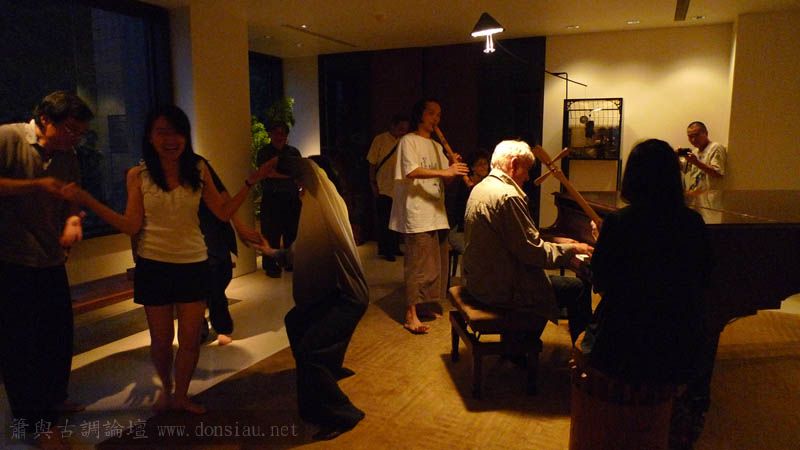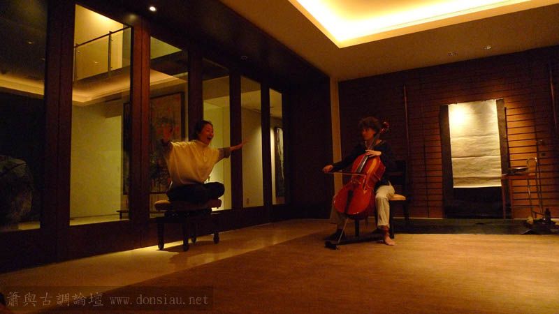 後續法籍白小姐的大提琴也加入,還有Tina的歌聲與月琴與吉他,旁正婆娑起舞...