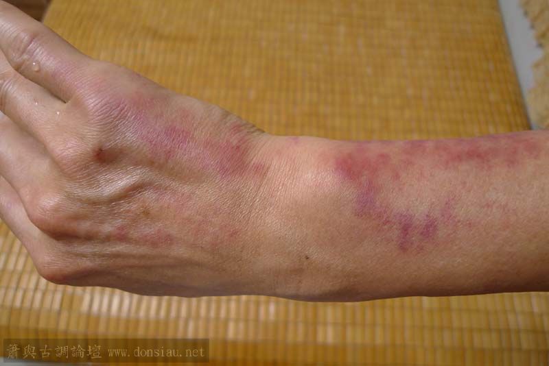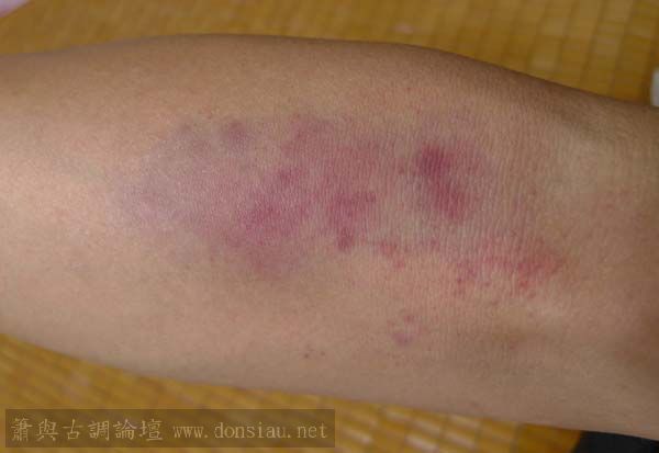 昨晚治療後淤血出於表,今晨與痠痛一起減退