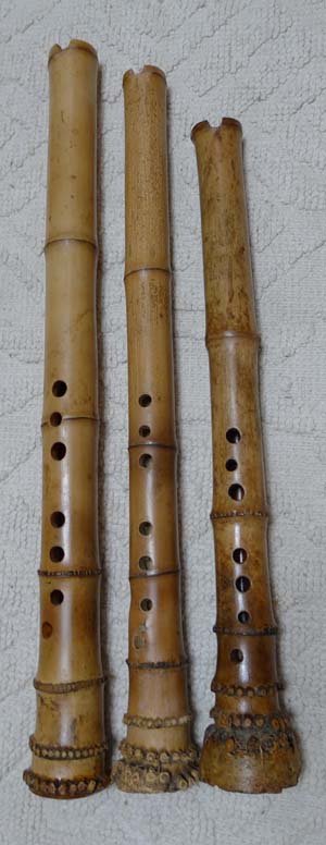 下圖三管短簫,簫聲為右側最短所吹