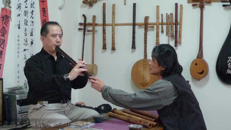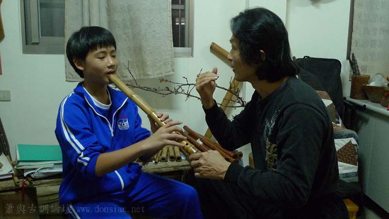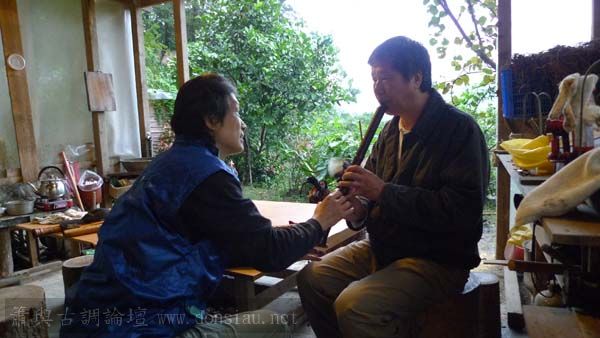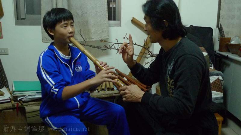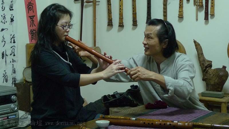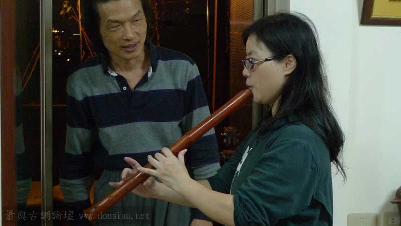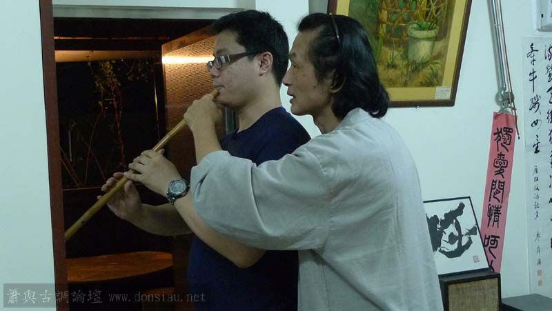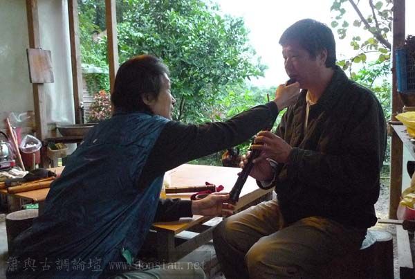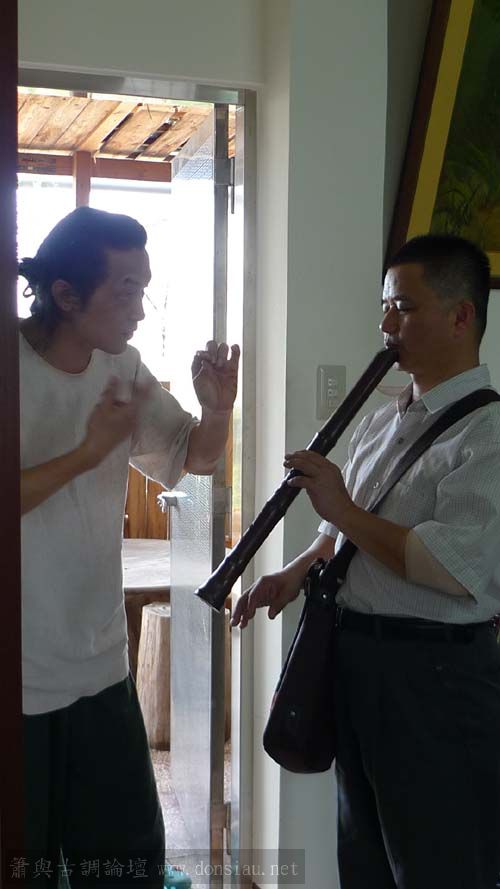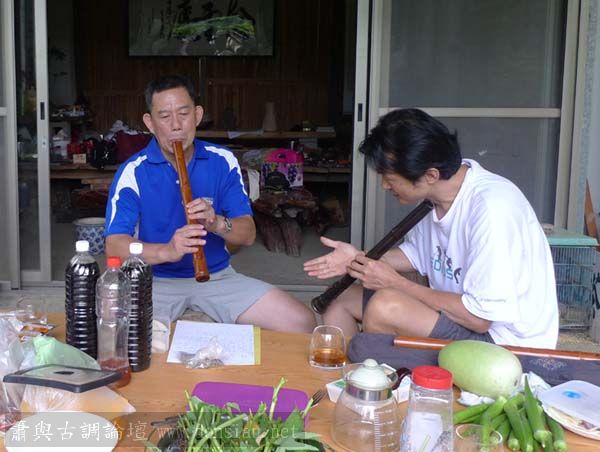 蔡先生來山學簫,自學多年,指法與吹法都做了訂正..