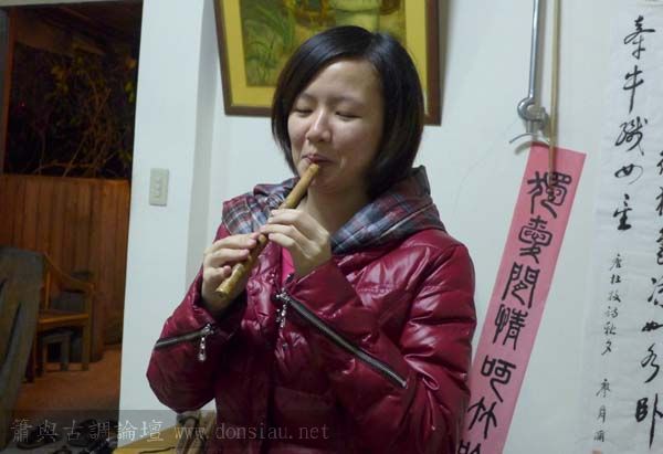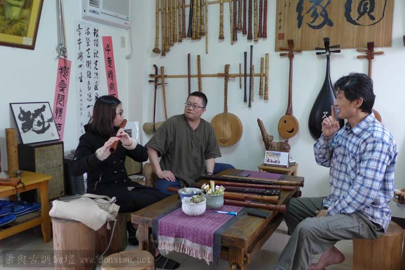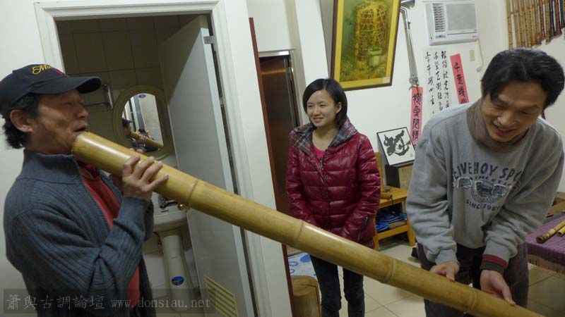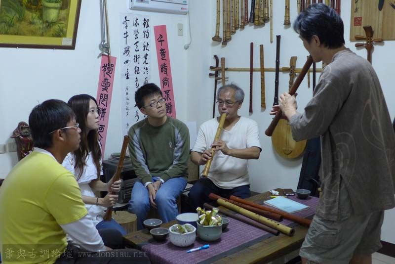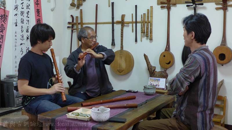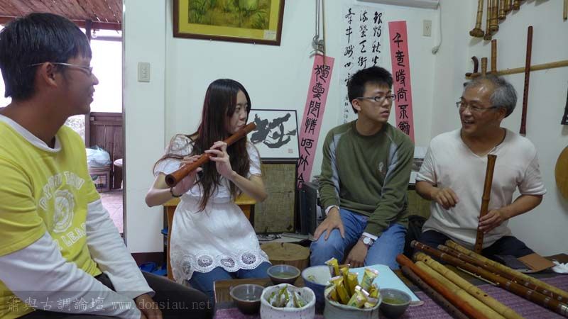 陳老師二度帶笛來做音孔排列樣本,也約了台大及文大的研究生一起到達,