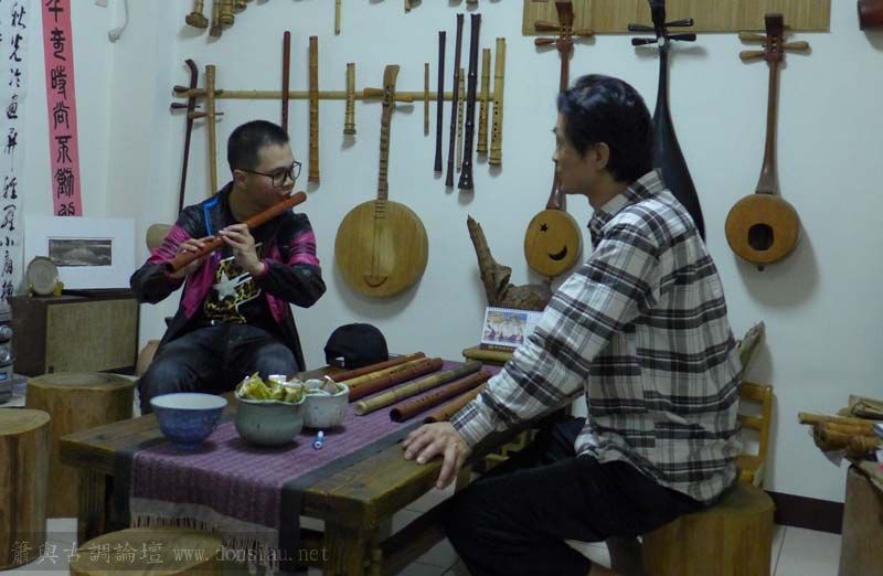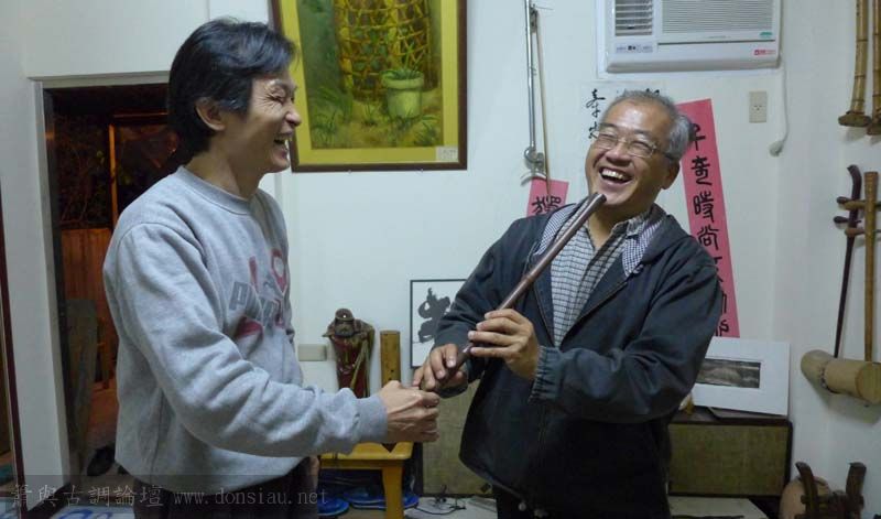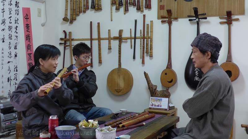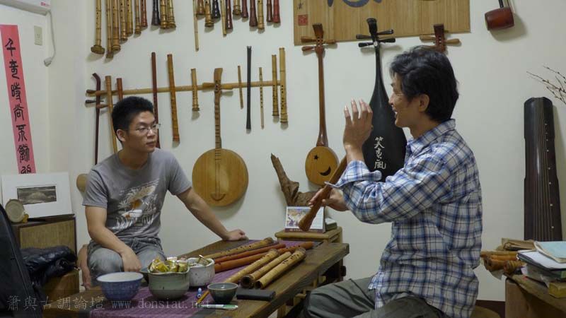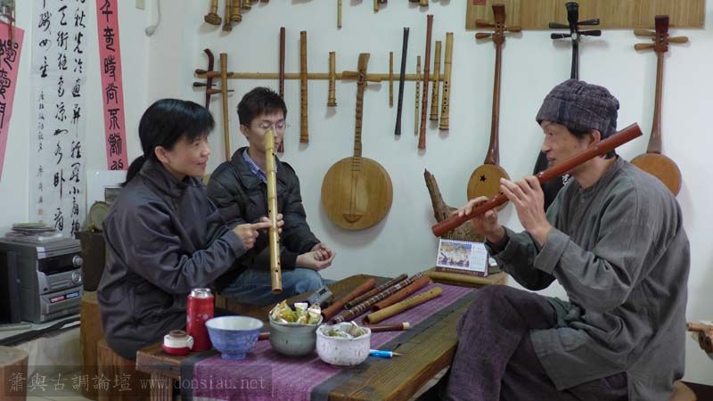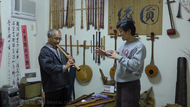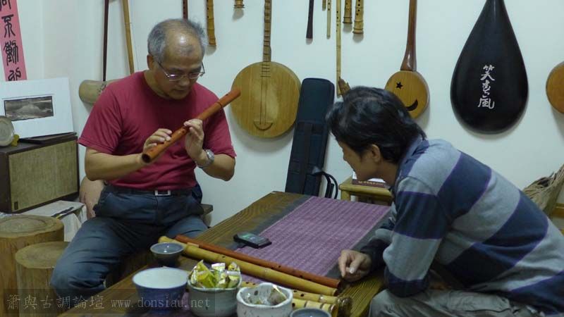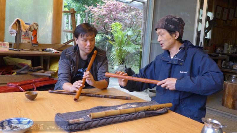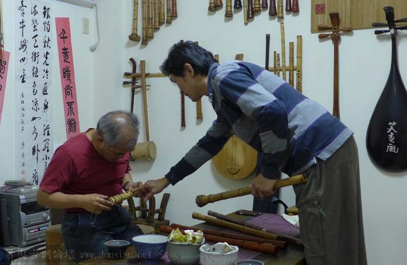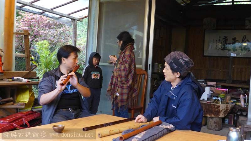 陳中申教授昨晚再訪,試合十孔笛初步樣品音孔排列位置,做進一步修正