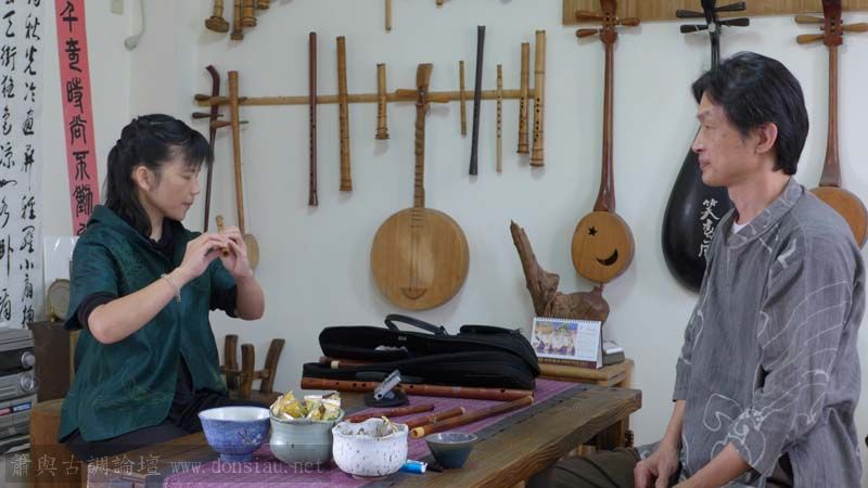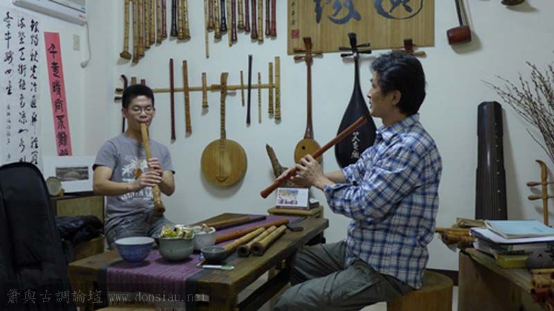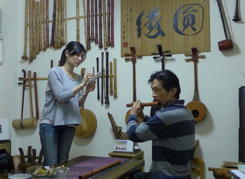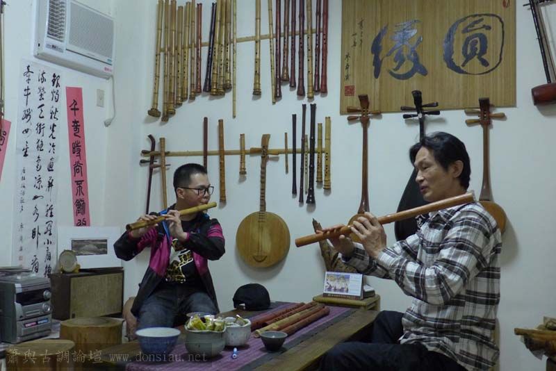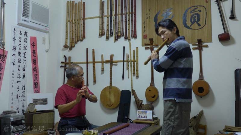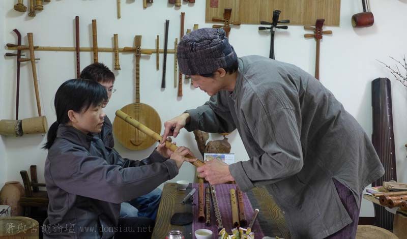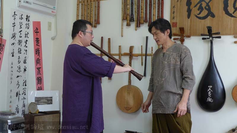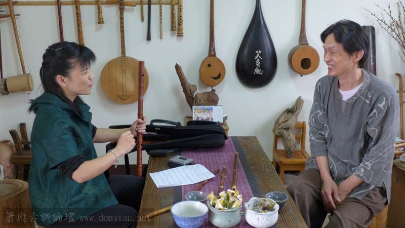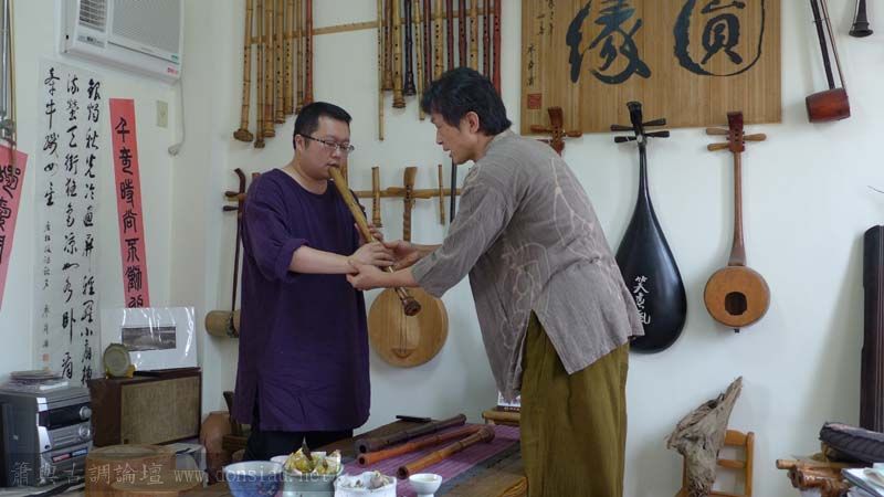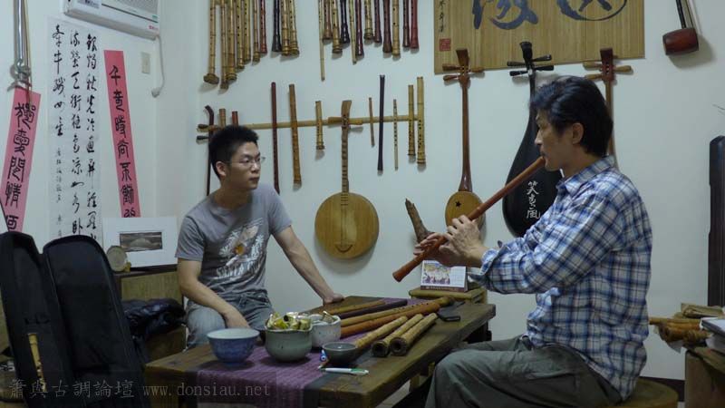 陳中申教授昨晚再訪,試合十孔笛初步樣品音孔排列位置,做進一步修正