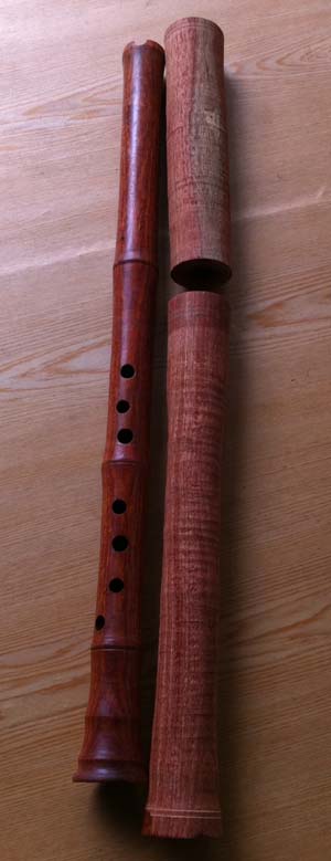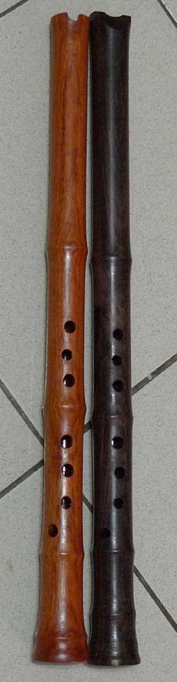 果真是好簫材!其中左管U口還是粗胚,及黑檀U口樣品,隔房間吹與竹簫比,