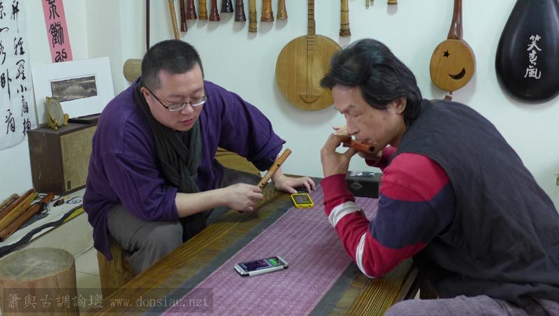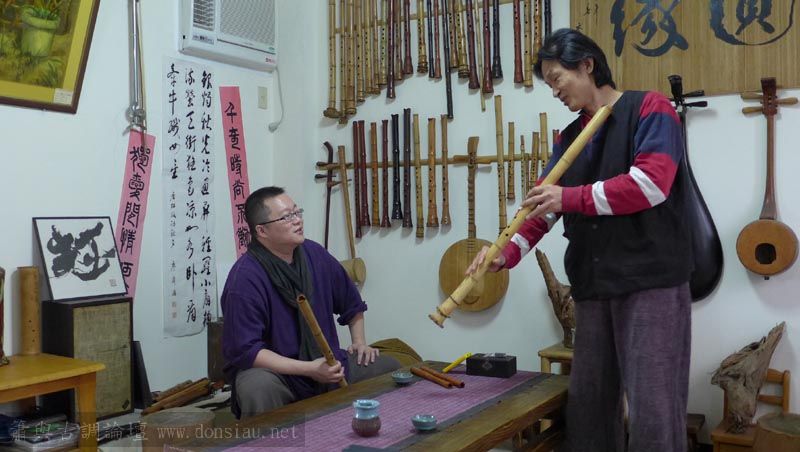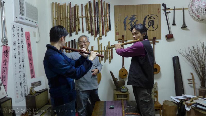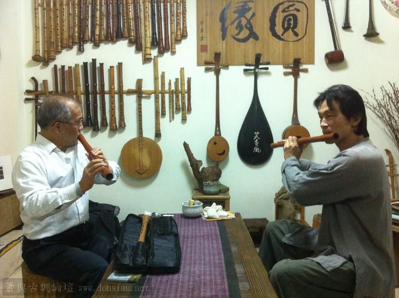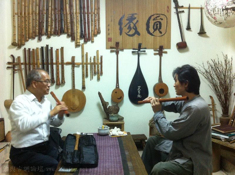 陳中申老師偕難藝大教古琴的朱老師一起到訪,琴簫和鳴不亦樂乎!朱老師試過文松簫後訂一管桂竹頂級琴簫