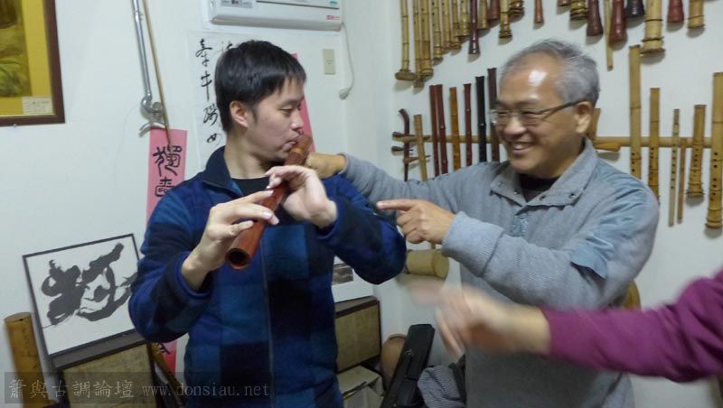 隨後北市國克威也到,關於十孔笛上把拇指的靈活度,我示範橫簫應用靠肩法,果然十孔笛加個靠肩如虎添翼!