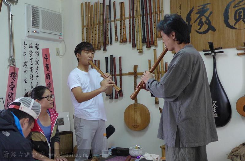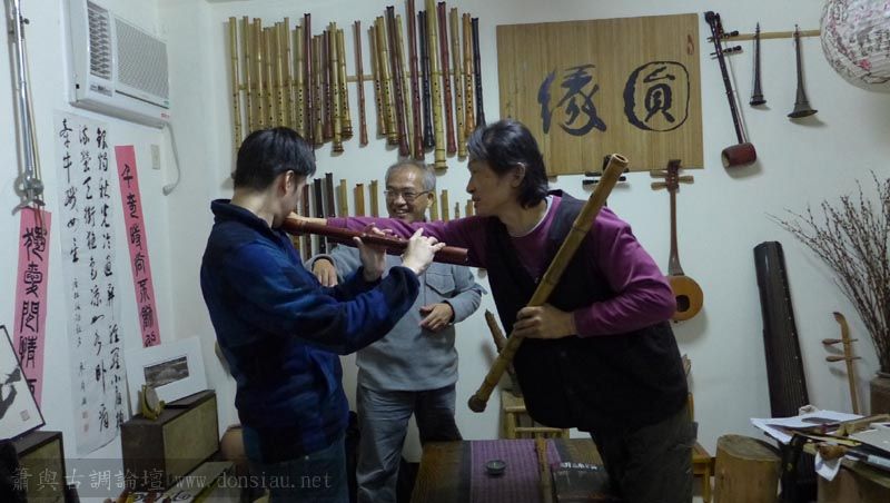 台藝大科班兩位同學來拿取所訂無膜十孔笛與竹炭大張力簫,順便講解風門與音色,