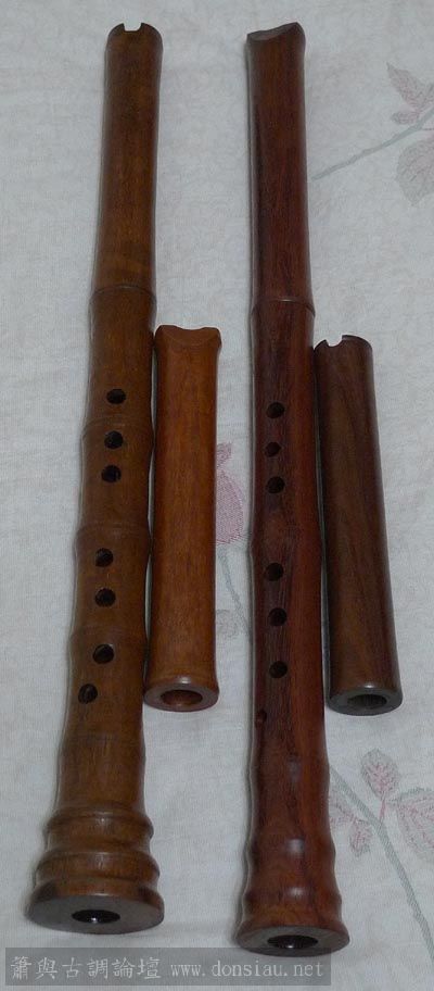 此兩管音量都比一般竹簫大,是我試驗各種檀木中,傳導與共振特性最理想的材料!