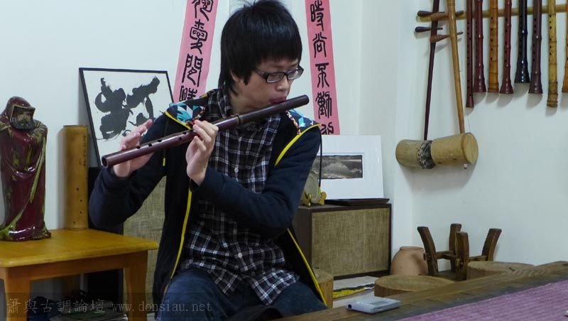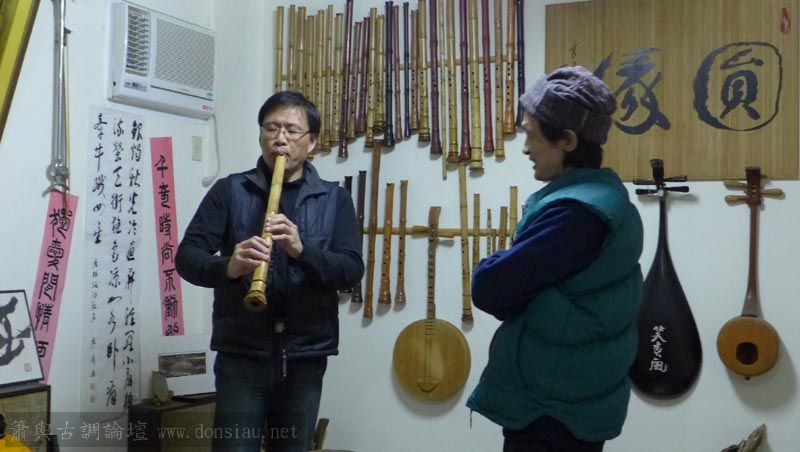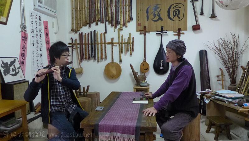 南藝大范同學使用文松簫有疑問專程北上洽詢,文松示範風門的收放與音色變化,