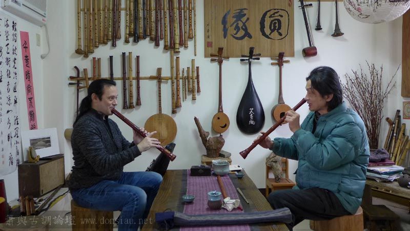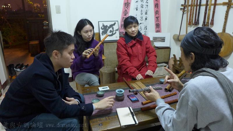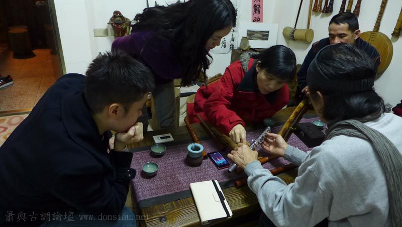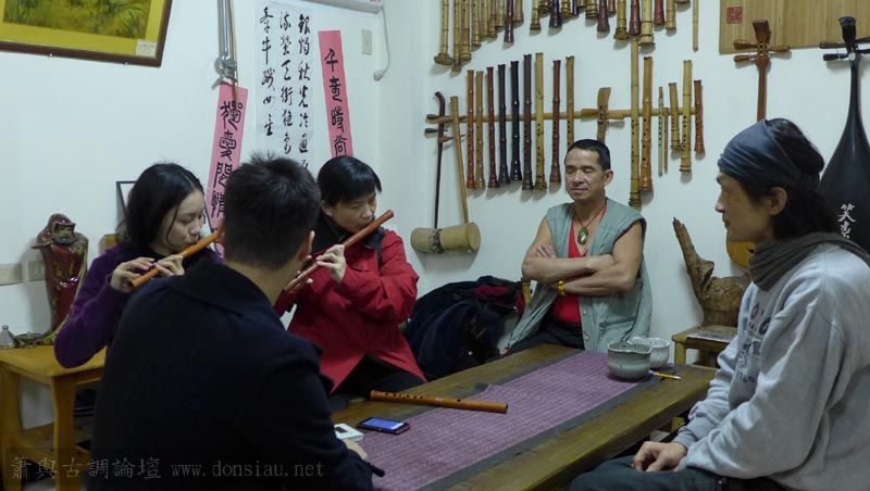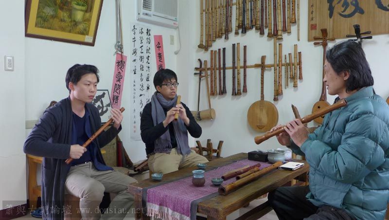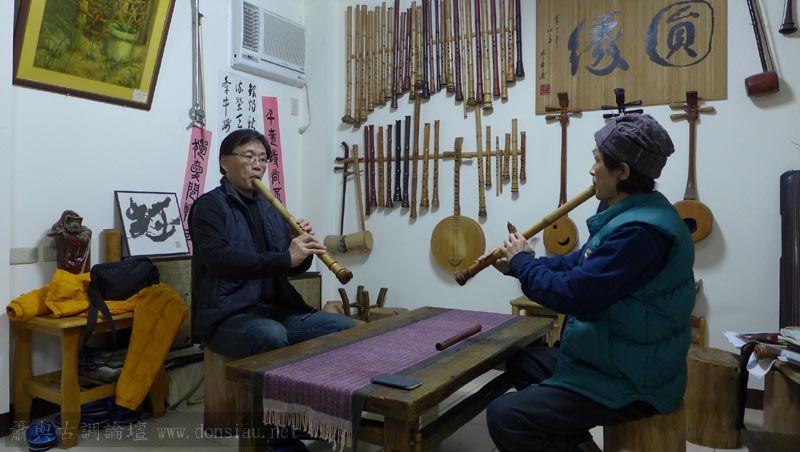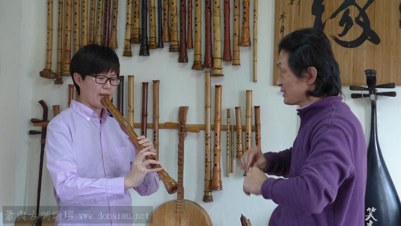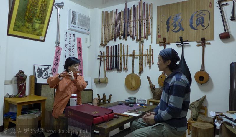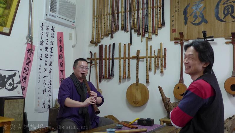 來自宜蘭的兩位笛簫老師一起來試吹文松新笛及橫簫