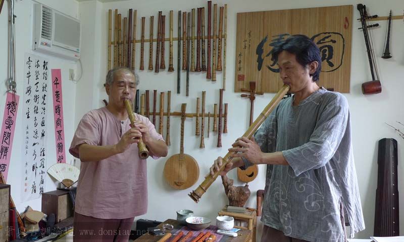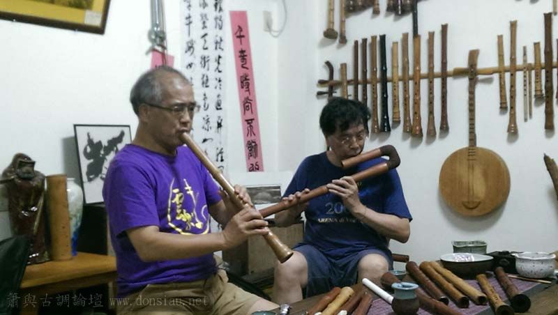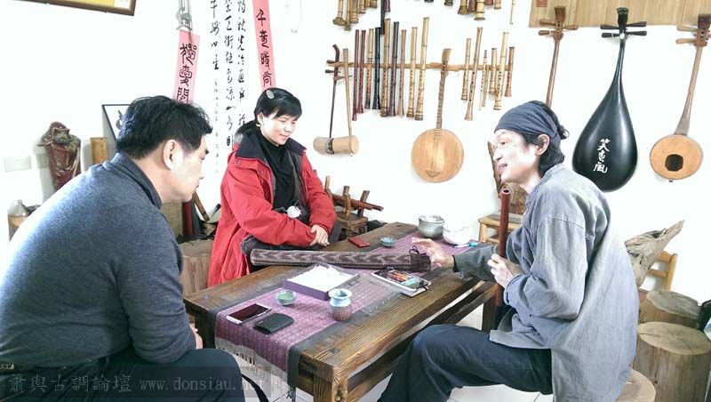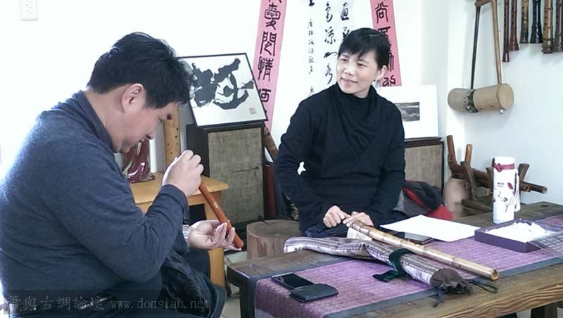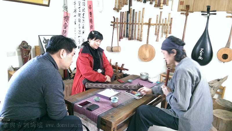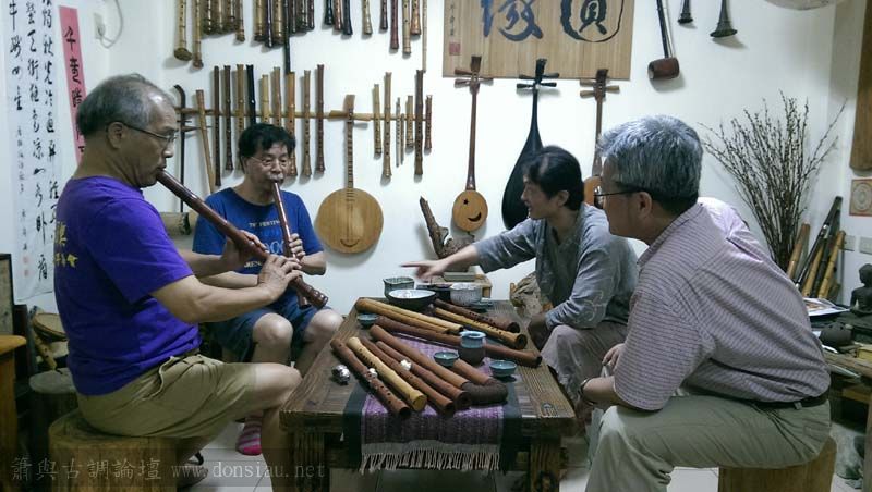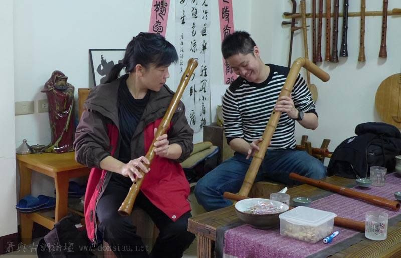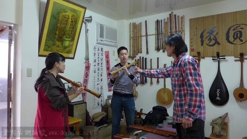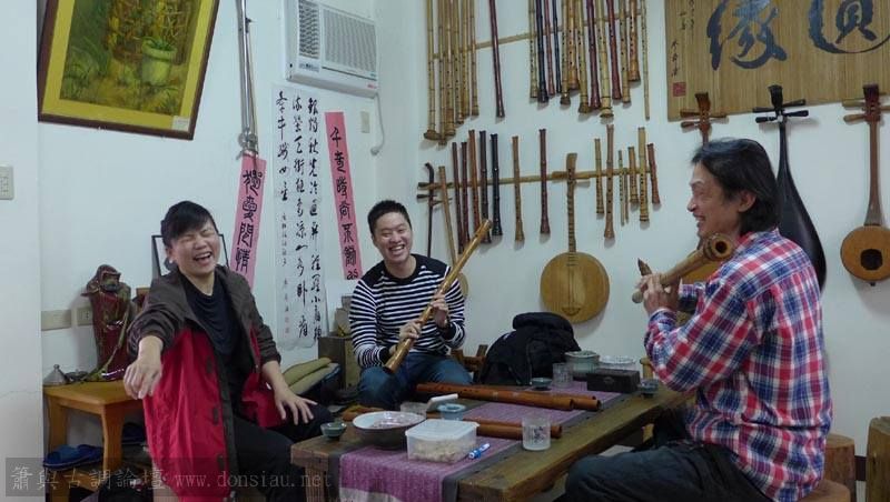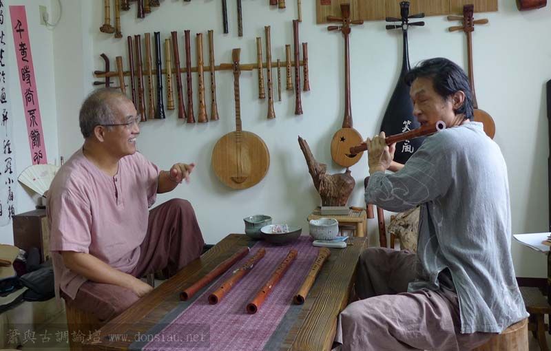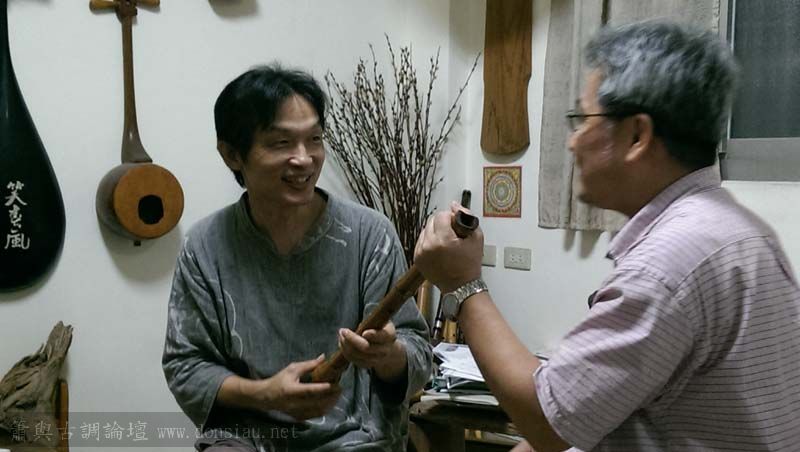 陳中申老師帶來長笛家莊清霖老師與科技人國樂愛好者許秀熒先生一起來交流,莊老師對長笛及低音長笛等很有研究,深入討論笛音色與製作上的問題,相談甚歡!莊老師相當肯定文松笛簫的製作與豐富共鳴音色,也對彎管低音笛的吹口設計很讚賞!理念殊途同歸,有樂遇知音之感!有意合作以竹炭材質製作中音笛吹口段,我樂意挑戰以吹口段調整全管音孔歸合共鳴深度的實驗