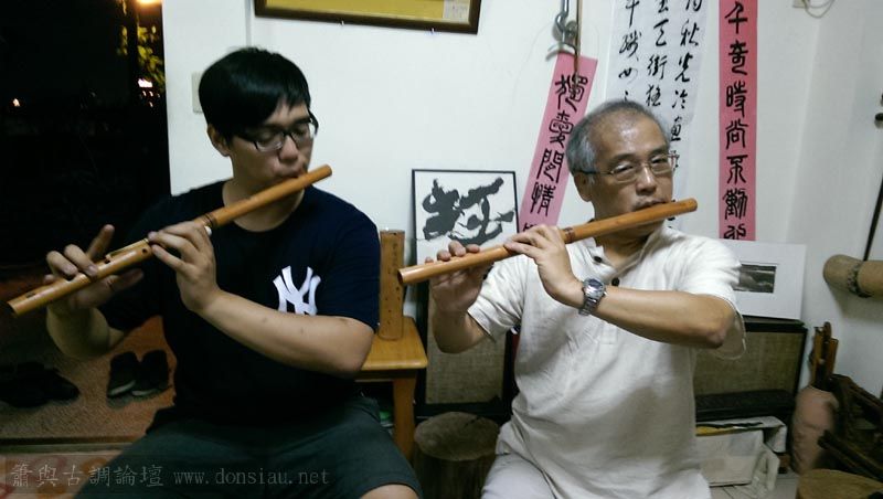 北市國莊老師學每週來學簫與笛的多重聲波共鳴吹法,已獲顯著進步,開始吹曲應用;