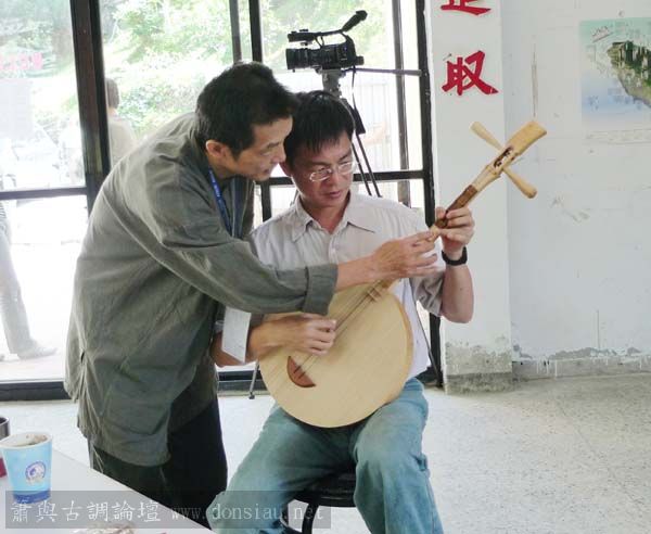 蔡教授也愛好月琴彈唱,趁機學習..